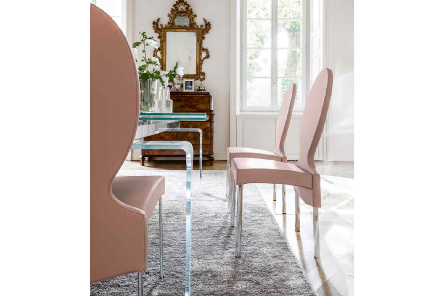 Explore our curated selection of luxurious dining chairs, crafted from premium materials such as solid wood, sleek metals, sumptuous fabrics, and exquisite leathers. Whether you're seeking ergonomic support for long conversations around the table, a minimalist profile to complement a modern dining room, or a classic design with intricate details, our diverse range offers the ideal seating solution. Many of these chairs are exclusive imports from Europe, bringing authentic continental style directly to your home.