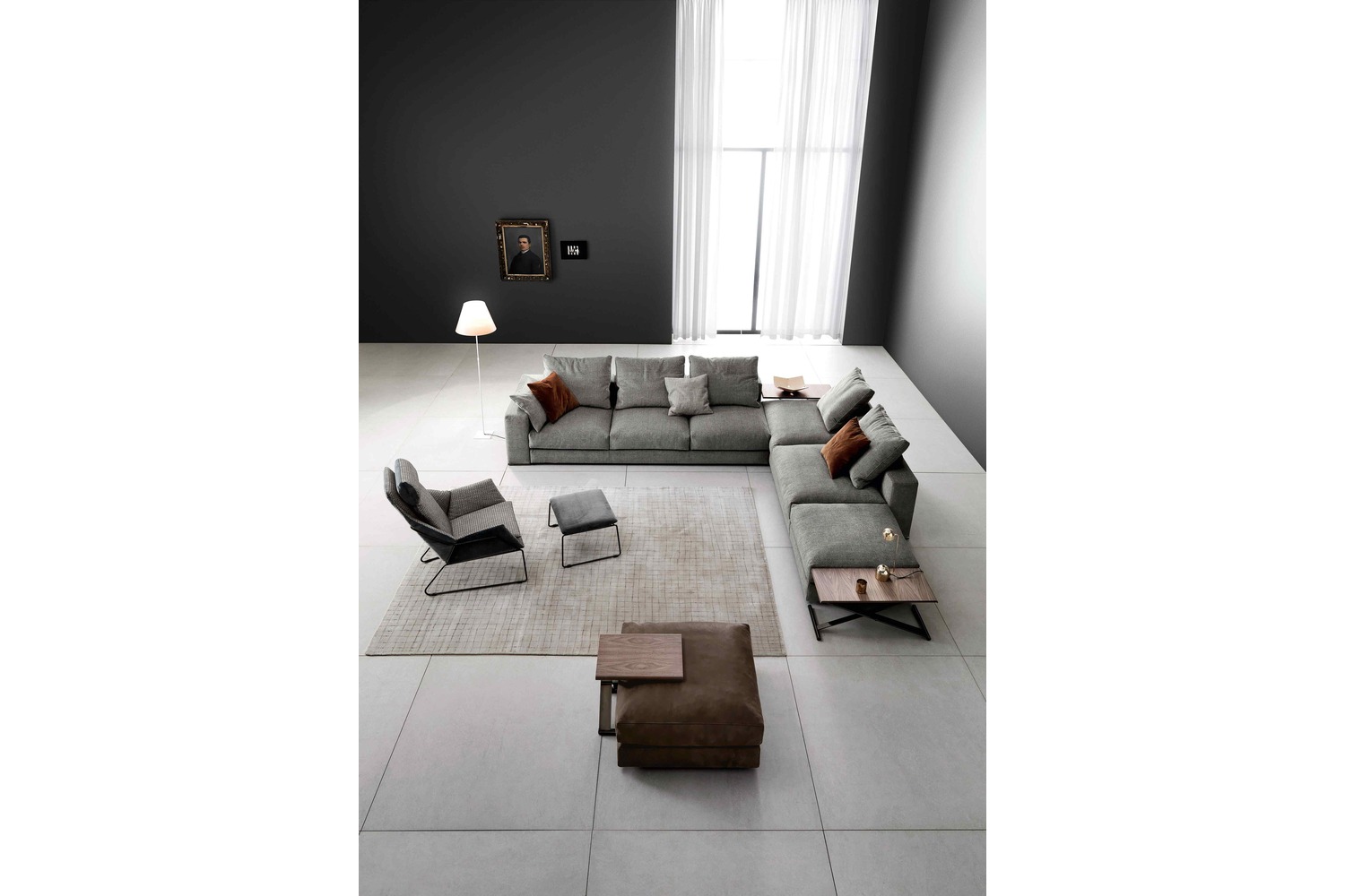 The Ananta Sectional Sofa with Modular Seatings stands out as a sectional sofa with an informal, modular, and versatile design, allowing for limitless combinations of independent backrests and bases. Drawing inspiration from the concept of infinity, the collection embraces a simple construction that breaks free from the constraints of traditional armrests and backrests. This sectional arrangement offers flexibility to cater to individual needs and spatial preferences. Enhanced with a side table available in two sizes, the sectional features a black chrome structure supporting a table top in either walnut veneer or regenerated leather. This thoughtful addition complements the overall design, adding both functionality and aesthetic appeal. Ananta Class introduces a novel, democratic, and modern approach to the interaction between furniture and people's lifestyles. The fully removable covers emphasize practicality and ease of maintenance, enabling convenient cleaning and the option to change covers for a consistently fresh and updated look. As a sectional ensemble, Ananta Class redefines spatial dynamics, providing a contemporary and adaptable solution that caters to diverse tastes and modern living preferences.