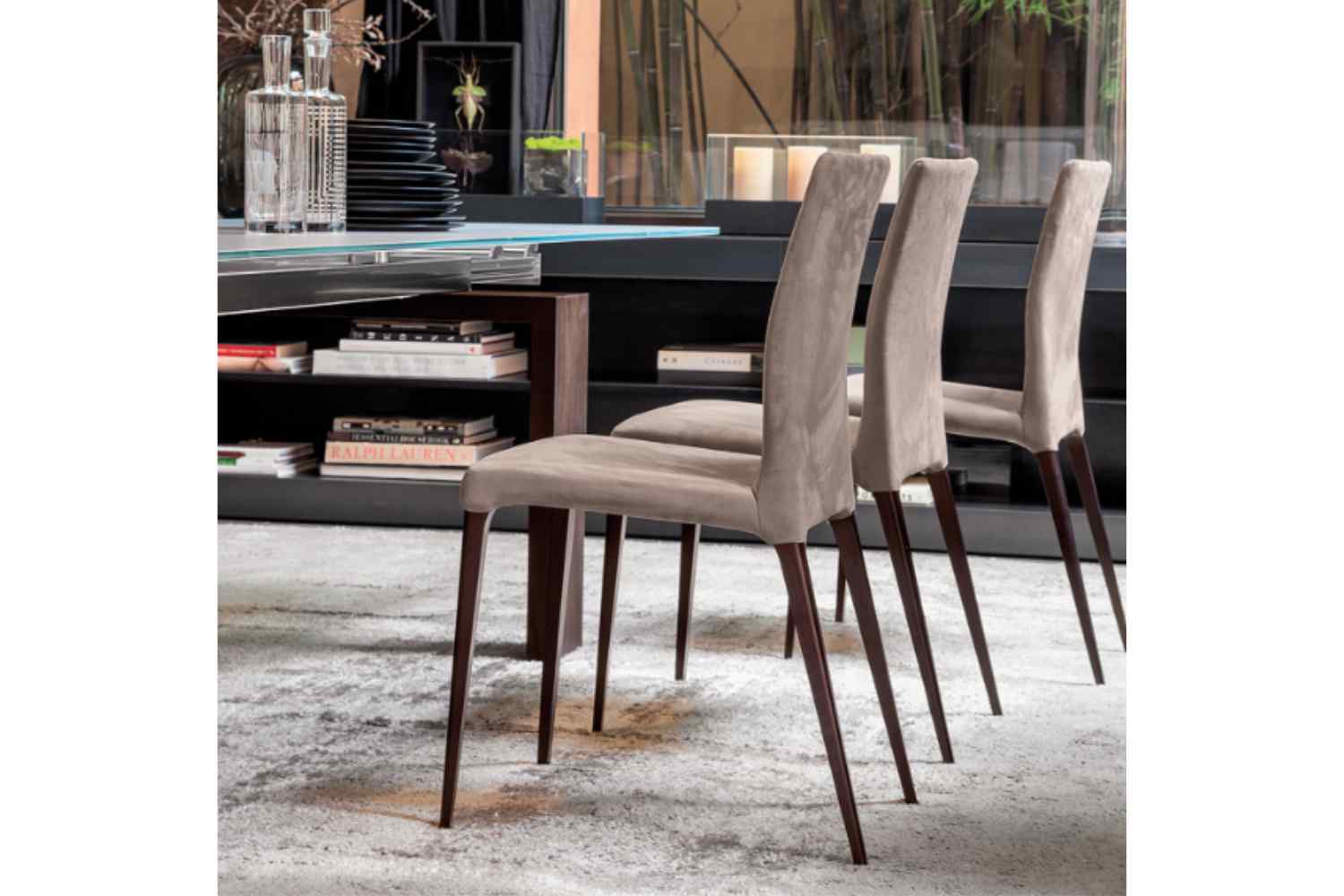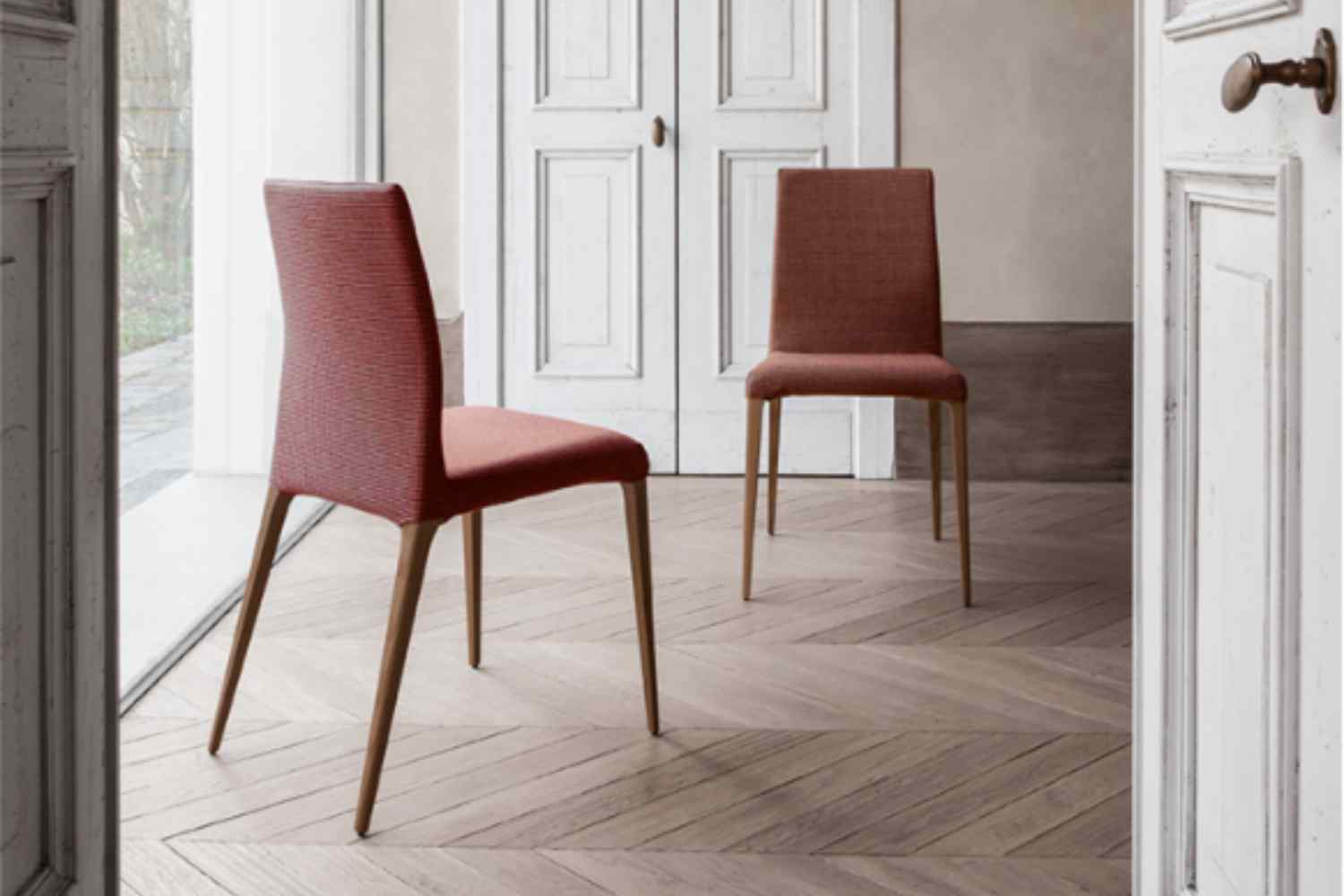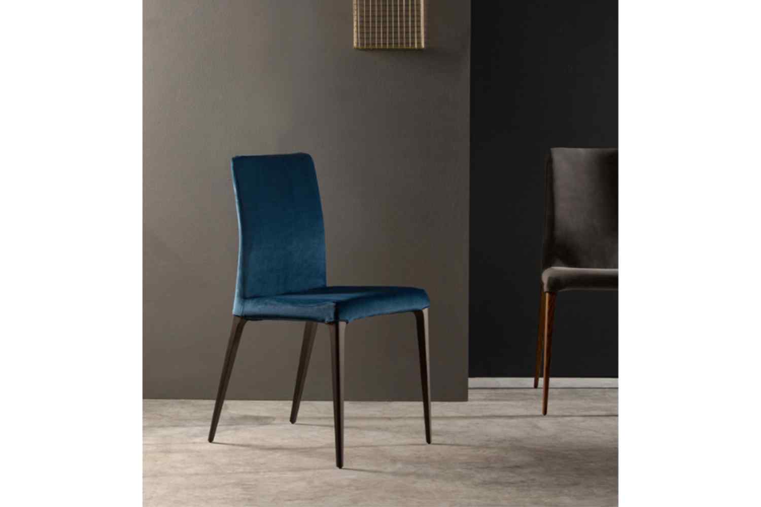 Aramona dining chair pairs style with function and looks lovely in a modern dining room. The contrast between the upholstered seat and wood legs pop against one another to make these chairs stand out with posh appeal. With a slightly curved back, it allows people to lean back comfortably during meals. The slightly angled back legs offer support.