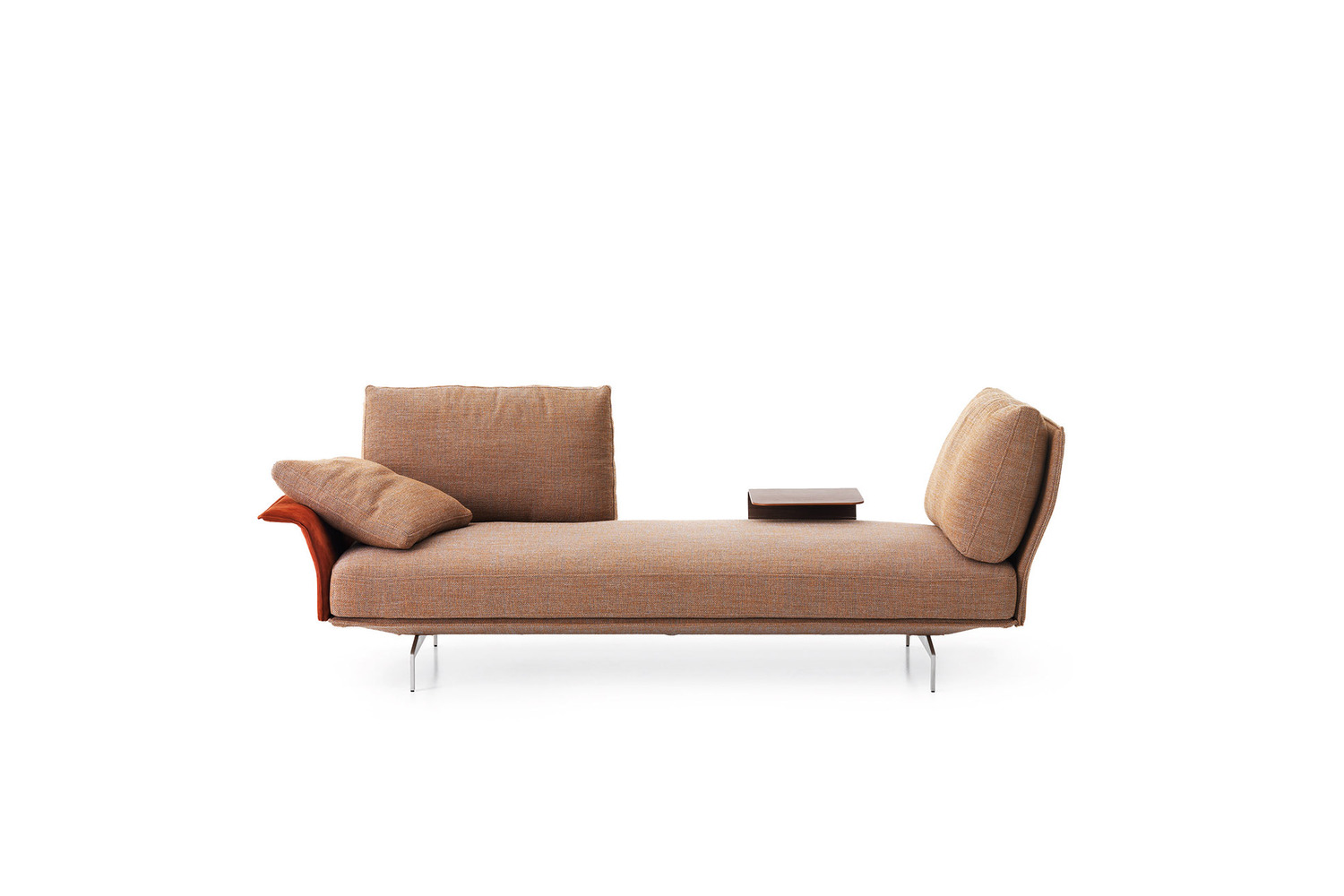 Flow, adapt, create void, rearrange space, receive, and renew indefinitely the new Avant-Apres seating, designed as a sofa with modular settings, is a testament to boundless versatility. Rigid yet lightweight, this sofa with modular settings introduces fascinating configurations through its special armrest/backrest system, which effortlessly detaches with a simple movement, allowing for flexible positioning all along the base. This unique feature inspires a daily pre-and-post dance, fueled by the desire to experiment and try something new. Avant-Apres, as a sofa with modular settings, emanates a sober allure and an elegant appearance. It stands gracefully on a metal base upholstered in fabric or leather, resting on metal feet. The addition of a chaise enhances its adaptability and comfort, providing an extra layer of versatility to the configuration. Refined accessories complete the system, featuring side tables in two different sizes. The fully removable covers add a practical touch, facilitating convenient maintenance and ensuring a perpetually fresh and updated look. Avant-Apres is not just a sofa; it's an invitation to reimagine and redefine your living space each day, offering both style and functionality in one captivating ensemble with modular settings. With its innovative design and thoughtful details, Avant-Apres sets the stage for a dynamic and ever-evolving living experience.