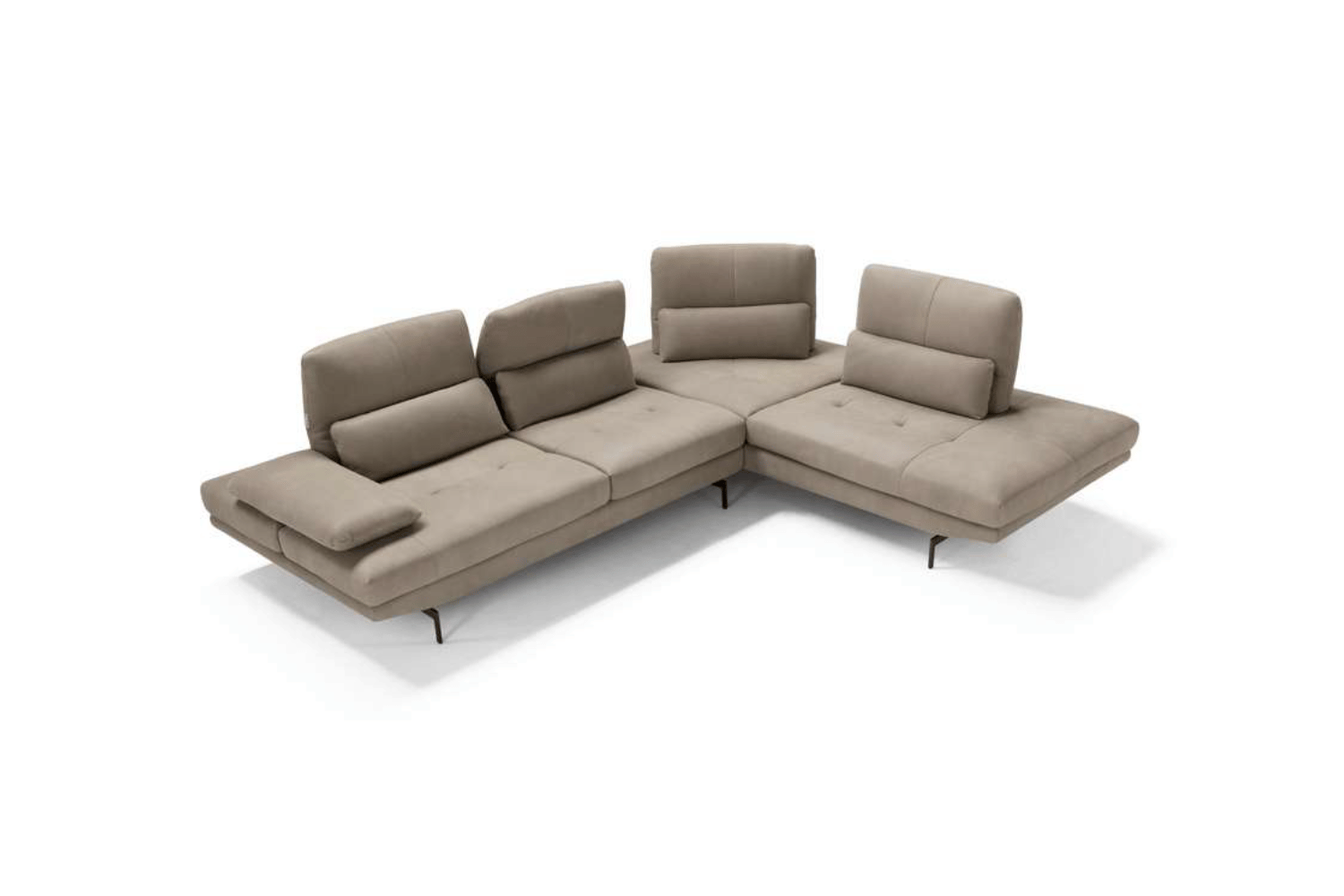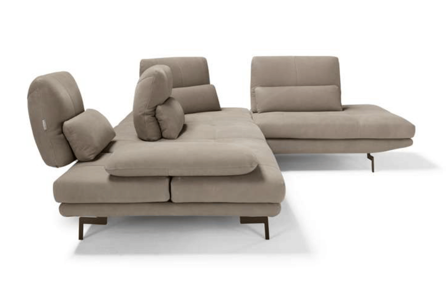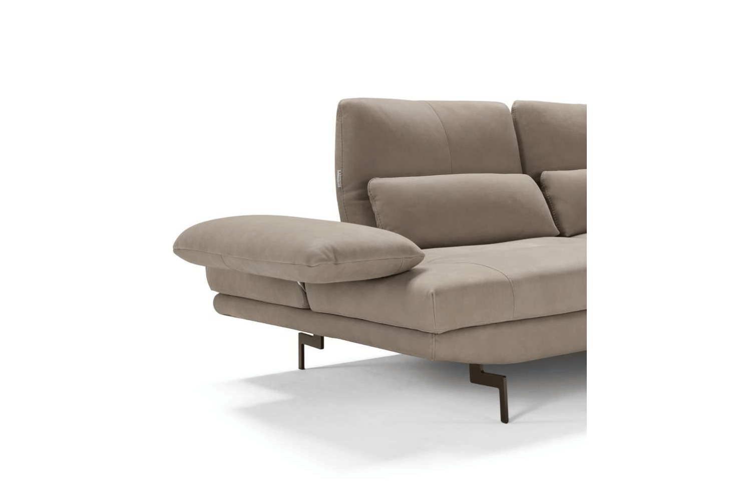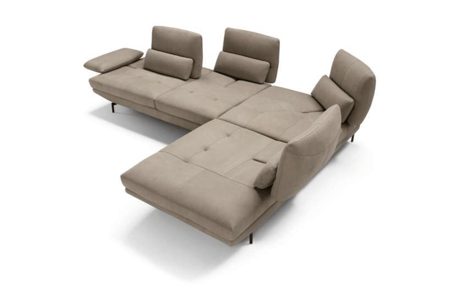 Bambola focuses on refined and sartorial details, with elegant metal feet and a flared line base. Versatile and functional, thanks to the ratchet adjustment mechanism in the backrest, it offers the possibility of manual inclination of the upper part of the back cushions. The modular elements, with a generous seat depth, provides various corner configurations also with chaise longue.