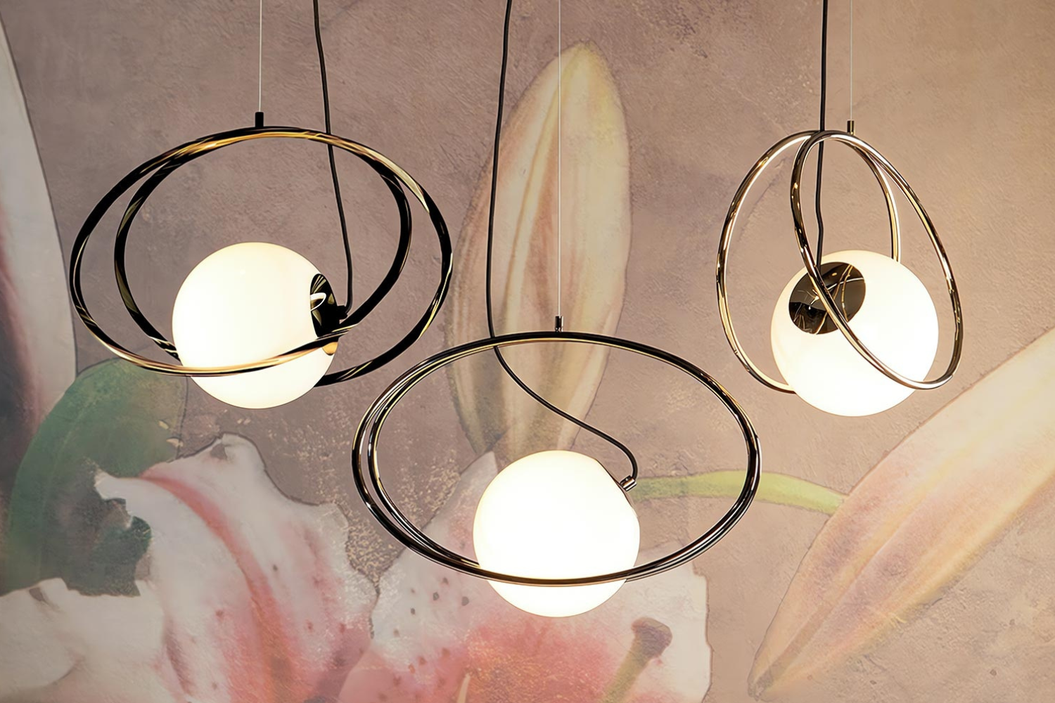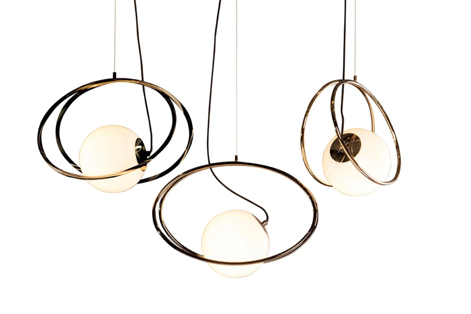 Elevate your interiors with the captivating elegance of the Bijois pendant light. Featuring a milky white blown glass globe encircled by sleek metal ellipses, its celestial-inspired design adds sophistication to any setting. Perfect for dining areas, foyers, or as part of a group installation, this fixture provides a warm, inviting glow. Choose between a timeless black or radiant gold chrome frame to complement the opal white glass sphere, blending effortlessly with modern or classic decor styles.