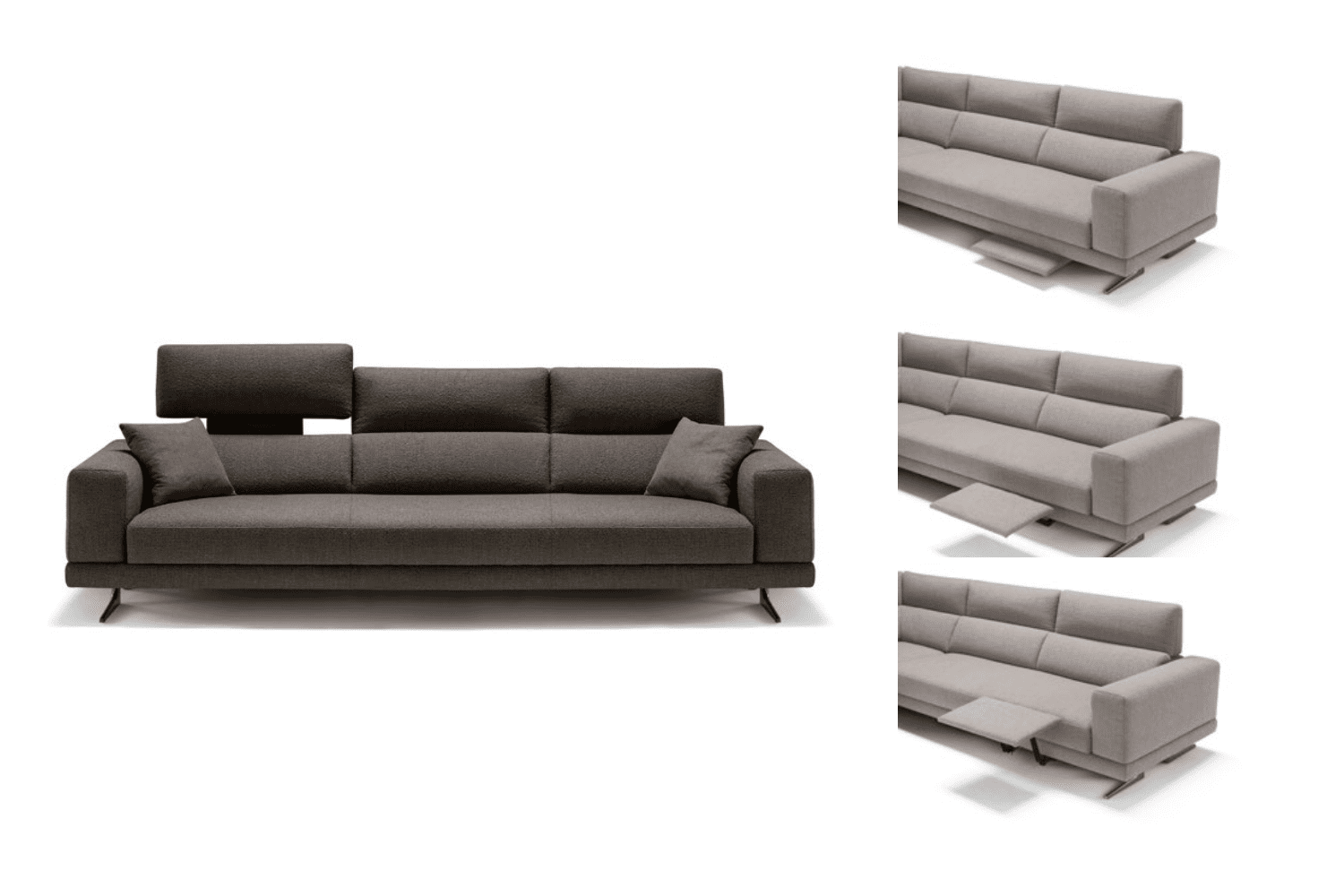 A clean, elegant design of well-balanced lines with metal feet that support and lighten the wooden structure base. Available in fabric or leather, Bluff has a vertical electric headrest that can also be manually adjusted forwards. In addition, it features the new an electrically adjustable footboard to ensure the highest level of comfort.