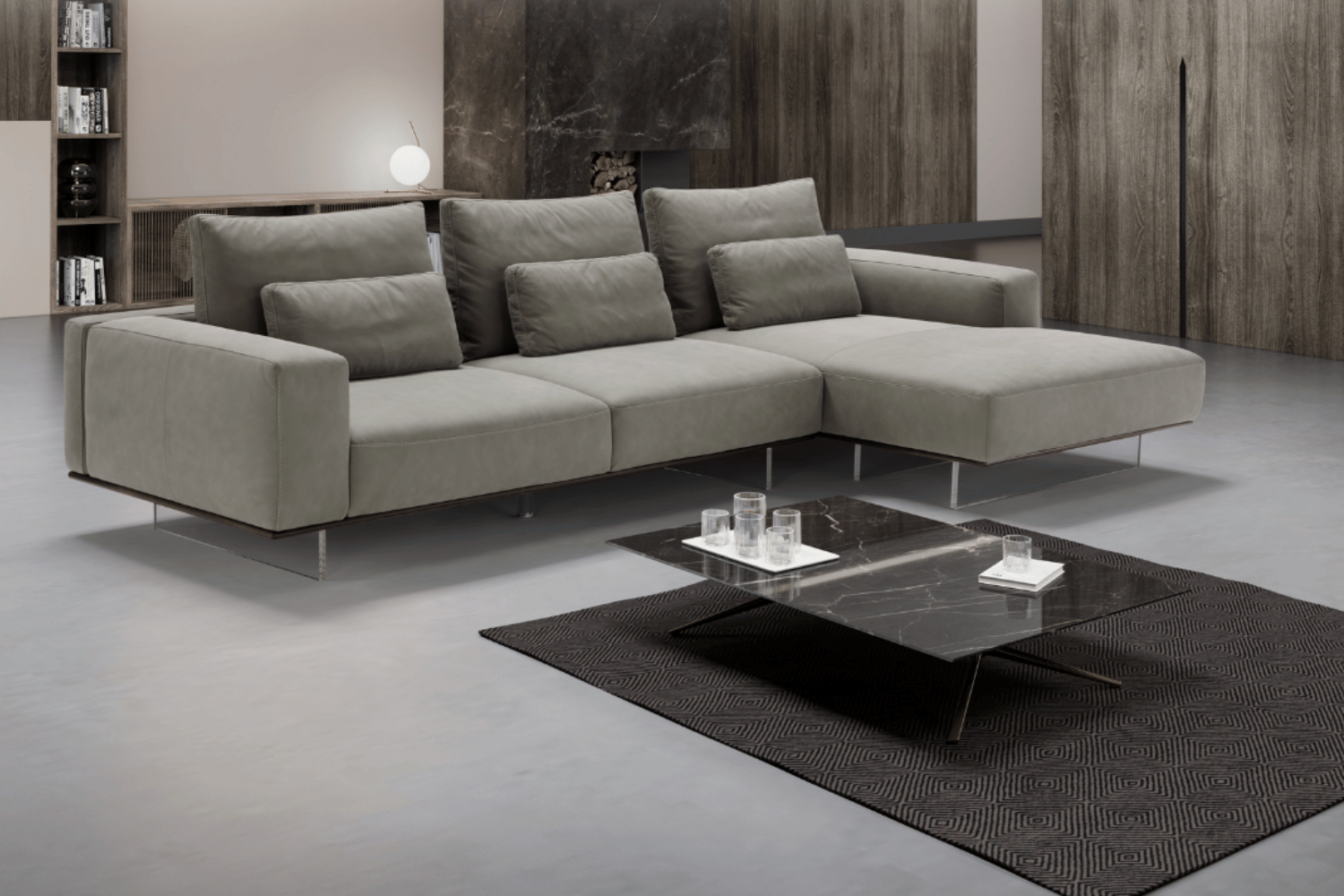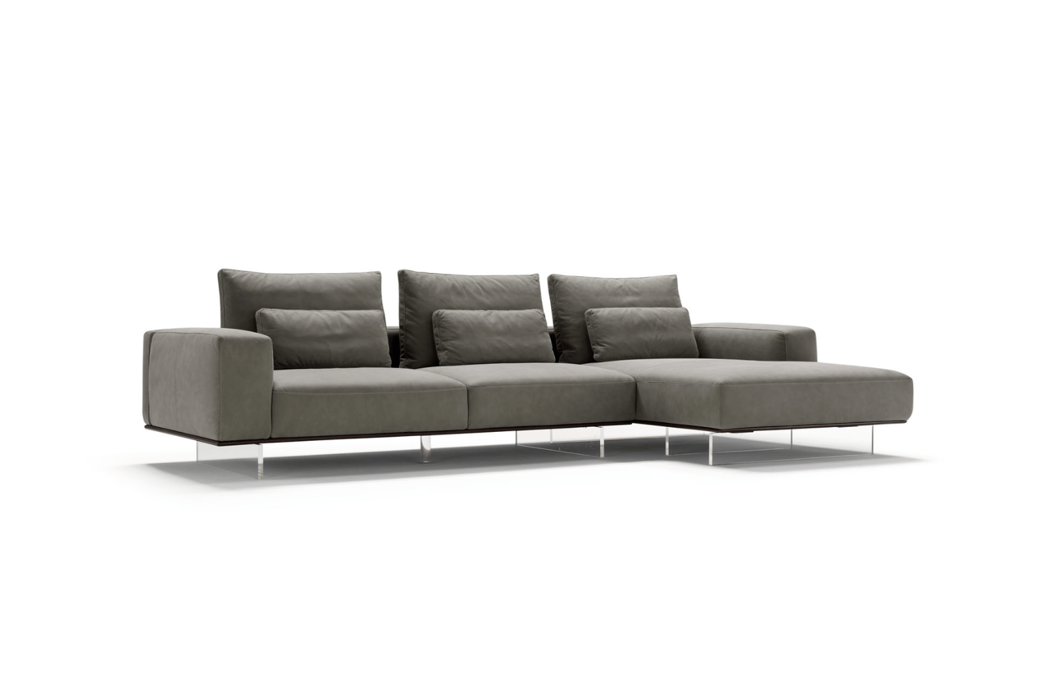 The Boss 2 combines contemporary elegance with exceptional functionality. Its sturdy wooden base is supported by transparent plexiglass feet, creating a sleek and modern aesthetic. The structure, crafted from fir wood, plywood, and chipboard, is covered with polyurethane foam and reinforced with a metal insert for added durability and support. Feather-filled back cushions enhance comfort while offering removable covers for effortless maintenance. The Boss 2 is a perfect choice for those seeking style and practicality in their living space.