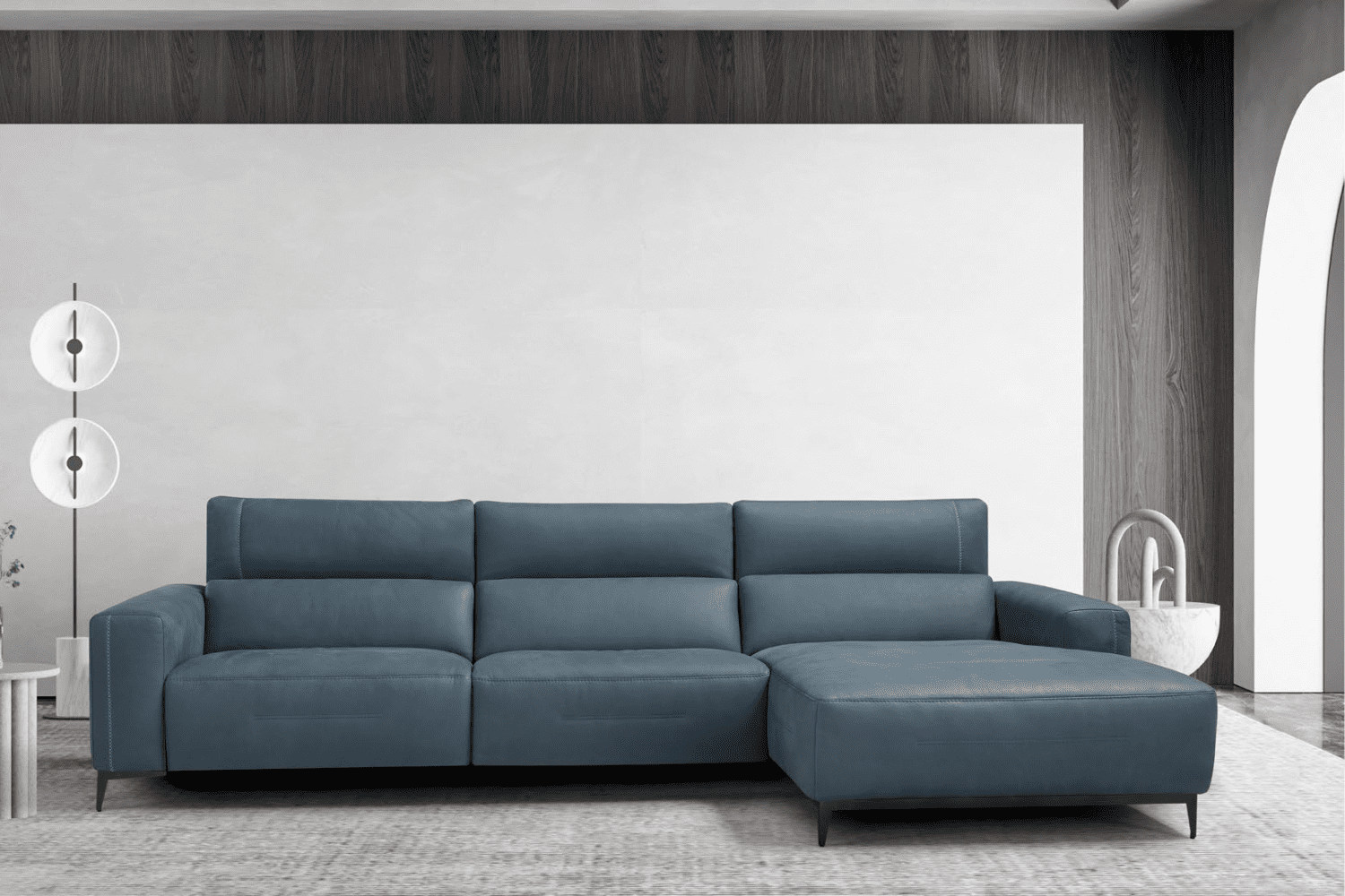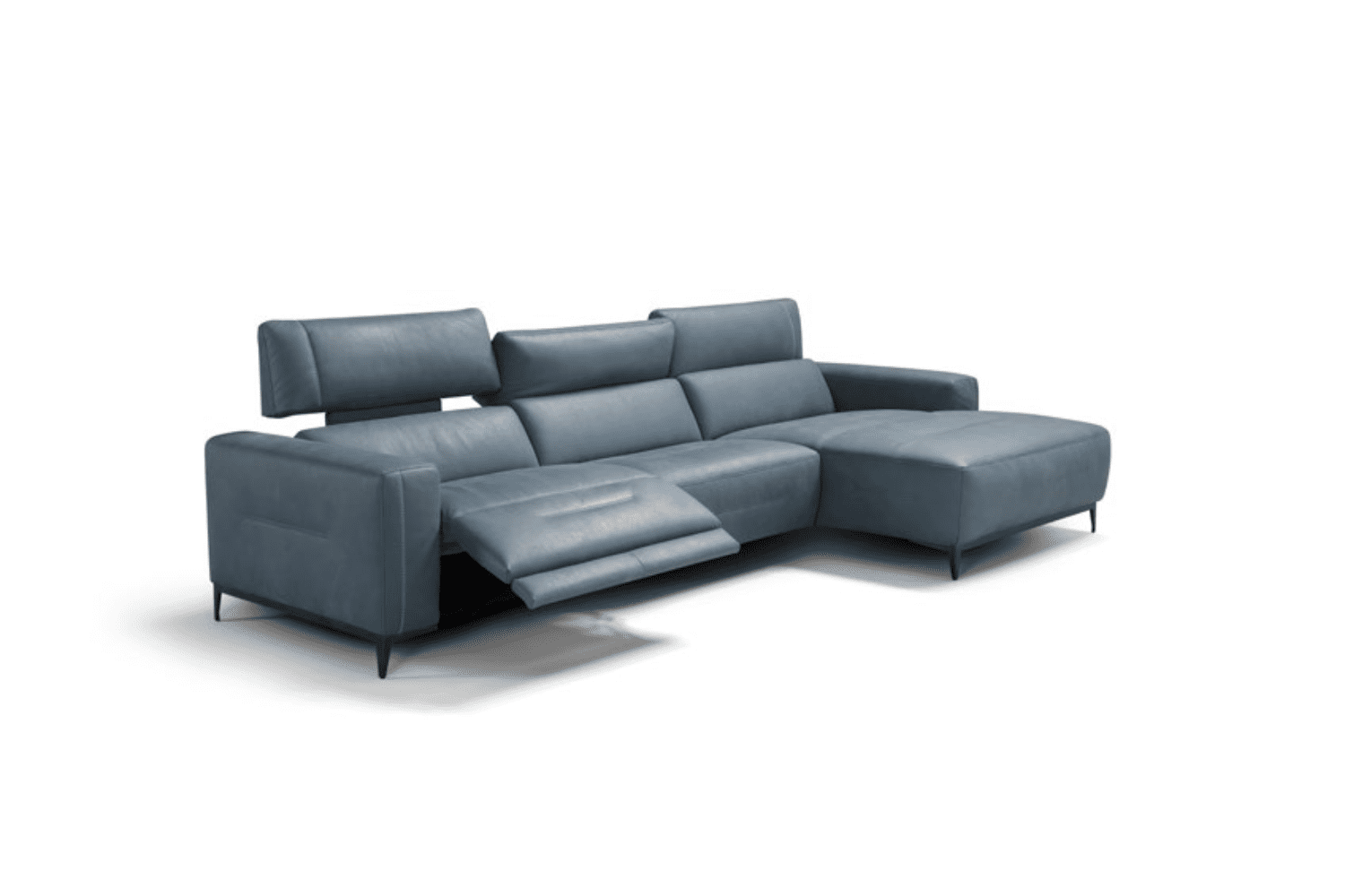 The Bratti sofa is a luxurious model boasting intricate details, including cross stitching adorning the headrest and armrest, as well as double side stitching that accentuates its profile. Available in both fabric and leather options, it features sleek metal feet and a motion function. With its double motor reclining seat, it offers seamless adjustment for optimal comfort. Additionally, its vertical adjustable headrest can be manually tilted forward, providing personalized support