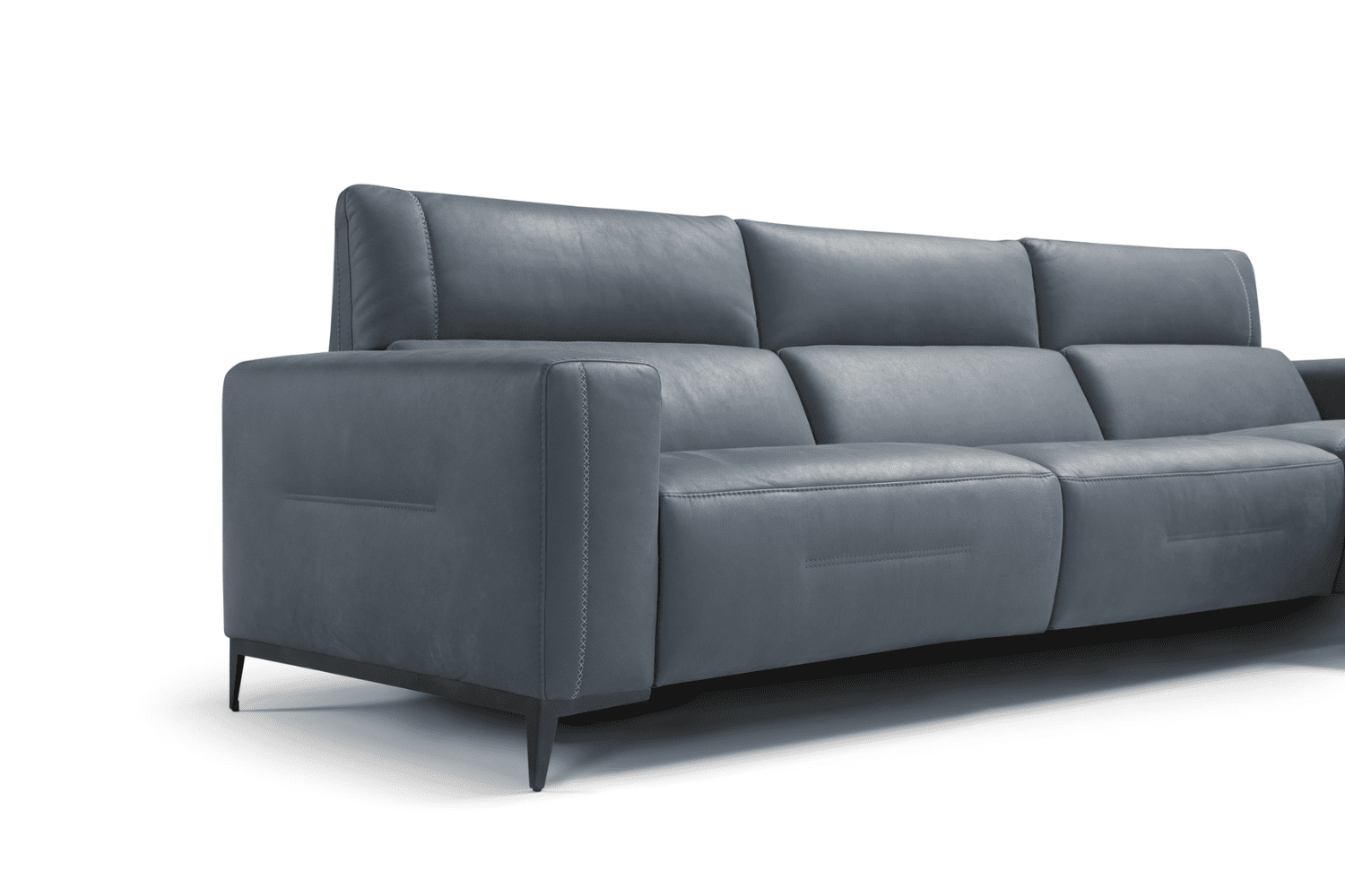 The Bratti sofa is a luxurious model boasting intricate details, including cross stitching adorning the headrest and armrest, as well as double side stitching that accentuates its profile. Available in both fabric and leather options, it features sleek metal feet and a motion function. With its double motor reclining seat, it offers seamless adjustment for optimal comfort. Additionally, its vertical adjustable headrest can be manually tilted forward, providing personalized support