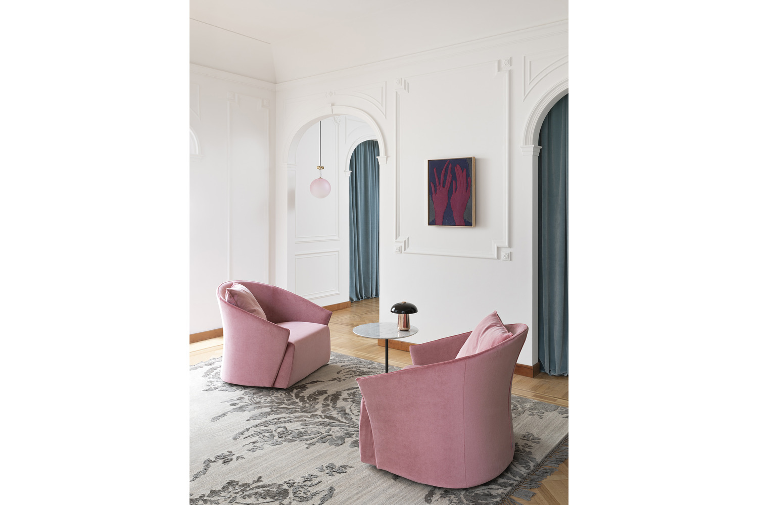 Bustier?s elegant, curvy shape was inspired by the body-hugging corsets worn by ladies in the 19th century. Its rigid shell embraces soft feather cushions, and its shape means you can adapt it to many different covers and uses. The unique Saba Italia fabric collection offers an eclectic selection of Bustier covers for residential or contract furnishing. Also available with a swivel base, fully removable covers.