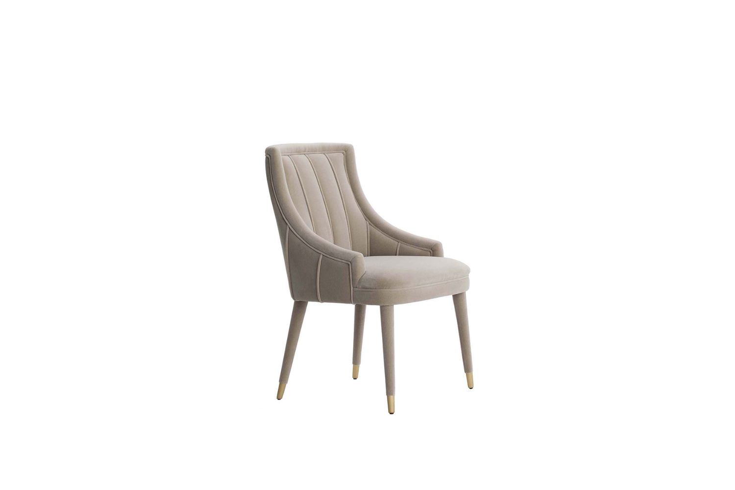 The Cerevra Dining Chair boasts an elegant and timeless design, offering supreme comfort with an enveloping form. Fully upholstered down to its legs, each chair is finished with exquisite metal tips in brass or steel, adding a touch of sophistication. For a more understated look, the Cerevra is also available with wooden legs, with optional brass tips and back seams. This versatile chair can be customized in any fabric or leather from our selection, or in COM, allowing it to seamlessly blend with any decor.