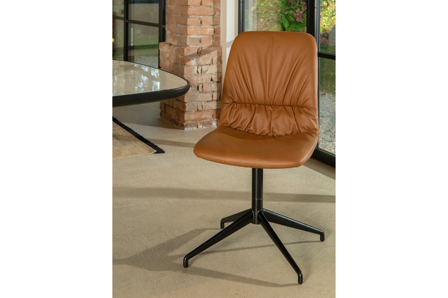 The Daphne Swivel Dining Chair combines practicality with refined design, bringing sophisticated style to any dining space. Its precisely tailored back, adorned with elegant horizontal detailing, adds visual allure and elevates the room's ambiance. With a cushioned seat and straight back, the Daphne offers superb comfort and support. The smooth metal swivel base allows effortless movement, perfect for lively conversations and luxurious dining moments. The Daphne Swivel Dining Chair is a harmonious blend of elegance and functionality, making it an ideal addition to a modern dining area."