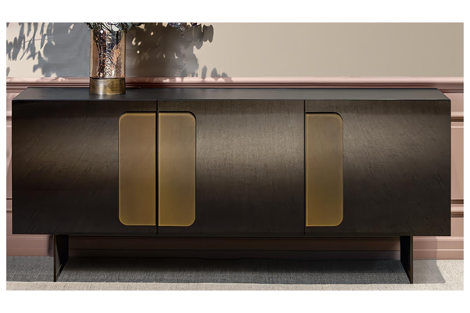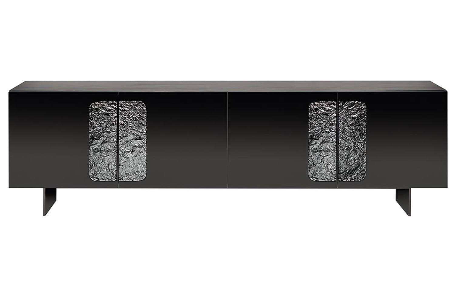 Elevate your modern home with the Debus sideboard, a sophisticated fusion of design and functionality. Its reflective black glass doors, accentuated by piano-key-inspired handles, bring a harmonious balance of elegance and contemporary flair. More than just visually striking, the sideboard offers ample storage to keep essentials out of sight, while the sleek top surface invites creative decoration. Available in three-door and four-door versions, it adapts to your space and needs effortlessly.