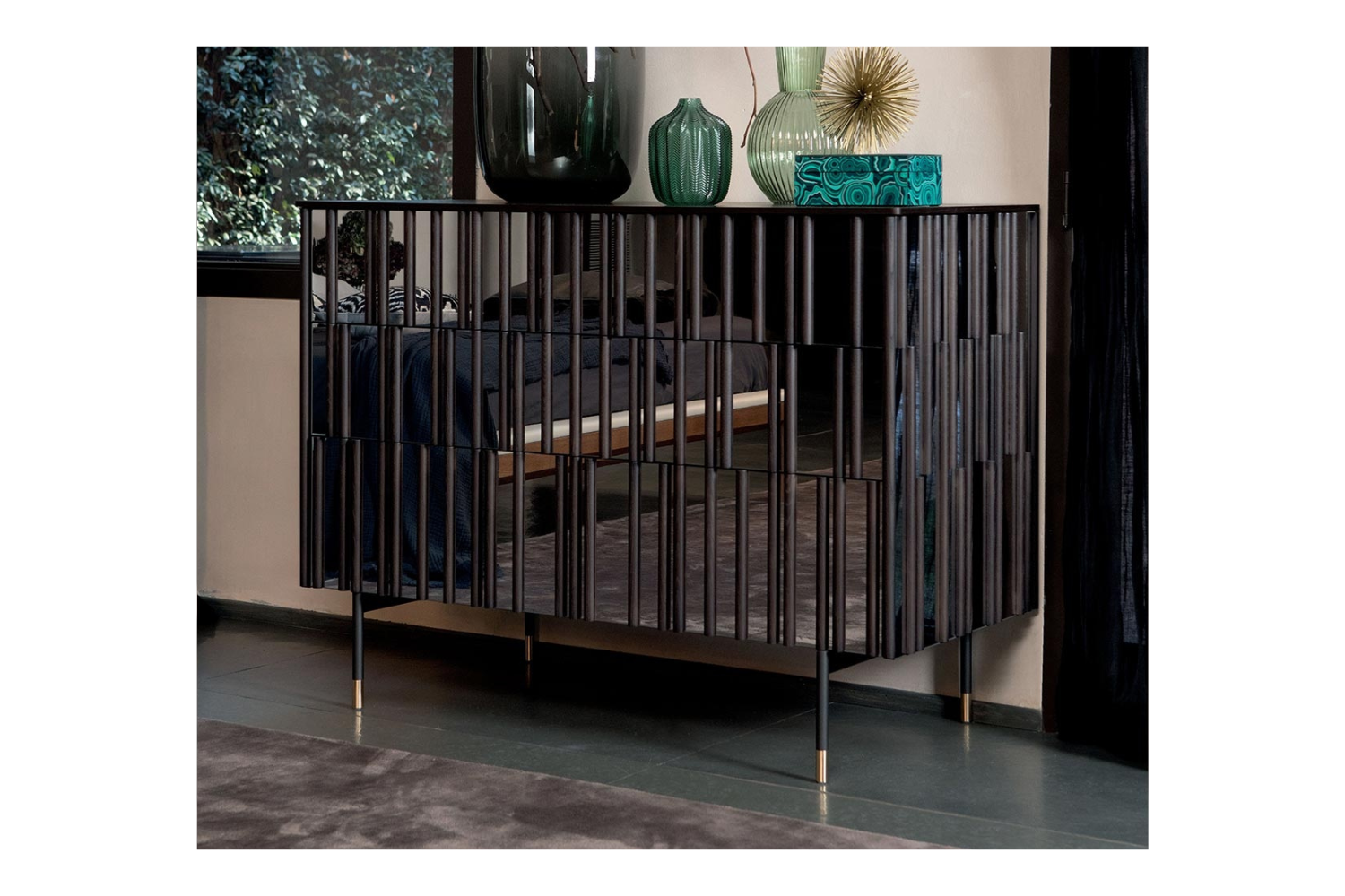 Make a bold statement in your bedroom with the Droppin Night Dresser, designed to captivate and elevate modern interiors. This striking piece showcases a dazzling textured striped pattern, blending contrasting mirrored and wood finishes for a sophisticated, eye-catching look. With three spacious drawers, it offers ample storage to keep your essentials neatly organized and out of sight. The expansive top provides the perfect space to display decorative accents and personal items. Crafted with the finest materials, this dresser is built to last and remain a stylish, sustainable addition to your home for years to come.
