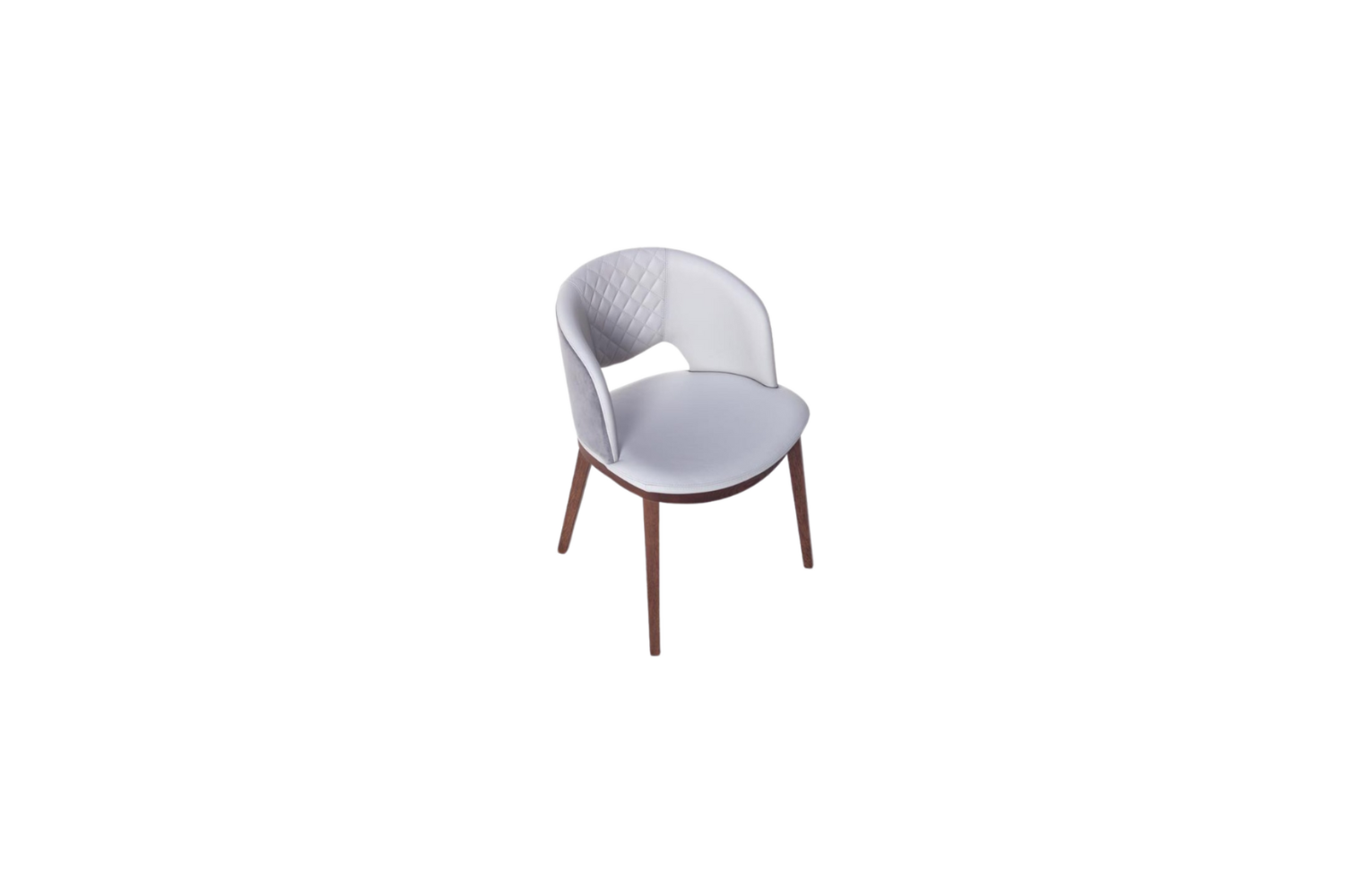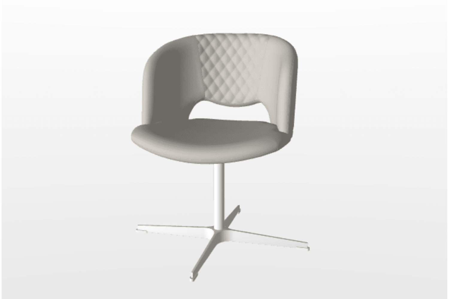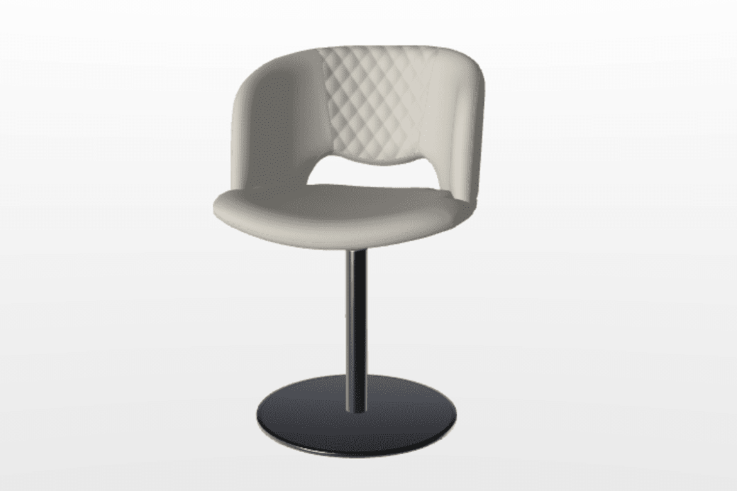 Armchair with plywood seat and back CNC machined, high density foam, upholstered with fabric, leatherette or leather. Available in several finishes and base options. Back side of chair’s back is available also with quilted fabric Dandy-T (price Cat. B).