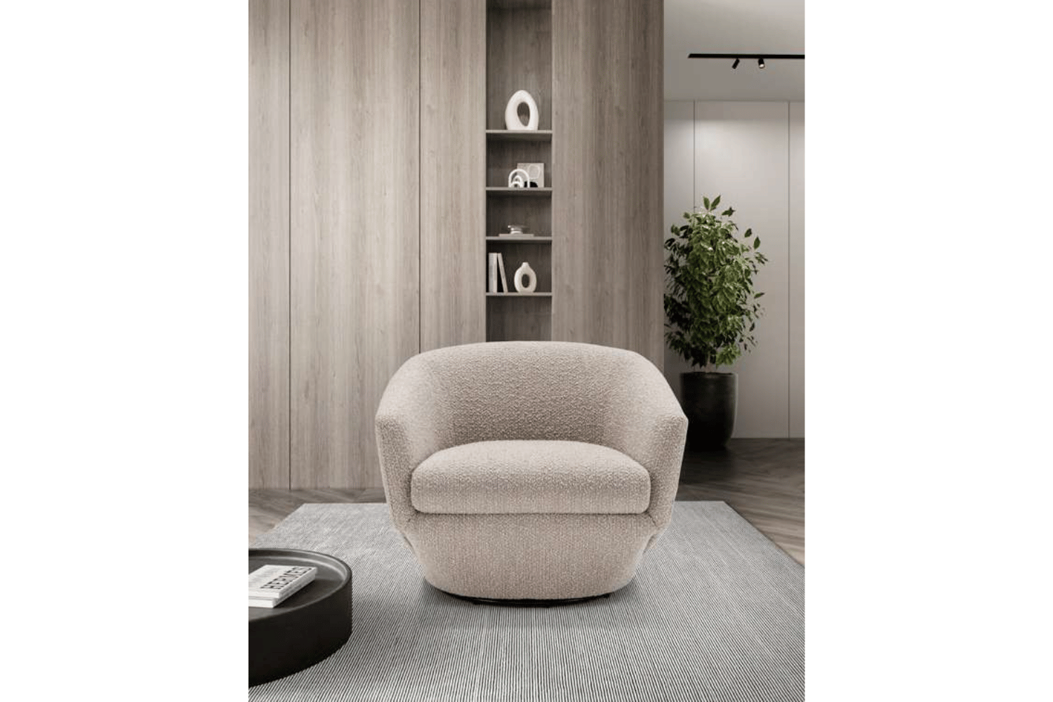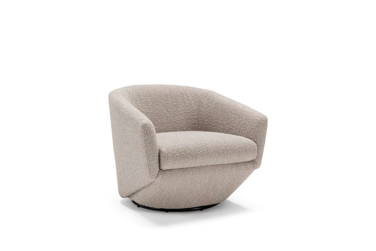 The Fracisi chair captures the essence of balanced comfort in a modern, compact form. Crafted with precision, its sleek lines and perfectly proportioned design create a welcoming aesthetic. The curved backrest flows naturally into the armrests, forming a unified, embracing structure, while the flared lines beneath the seat cushion add an elegant touch. Featuring a smooth swivel base, Fracisi offers both style and ergonomic support, making it a versatile choice for any space. Available in premium fabric or leather, this chair combines refined design with luxurious comfort for the discerning home.