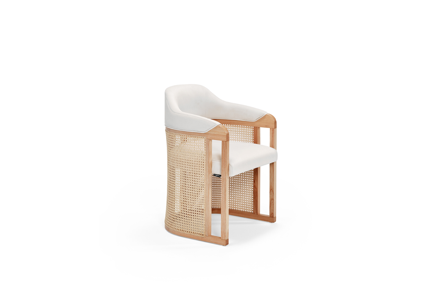 The GRACE Vintage Dining Chair beautifully blends modern design with natural materials, creating a warm and timeless aesthetic. Its solid wood frame is complemented by a cane backrest, available in natural or black finish, for a refined touch. Both the seat and backrest can be upholstered in a wide selection of fabrics to suit your style. The GRACE Vintage Chair enhances dining spaces, inviting you to linger in comfort and elegance.