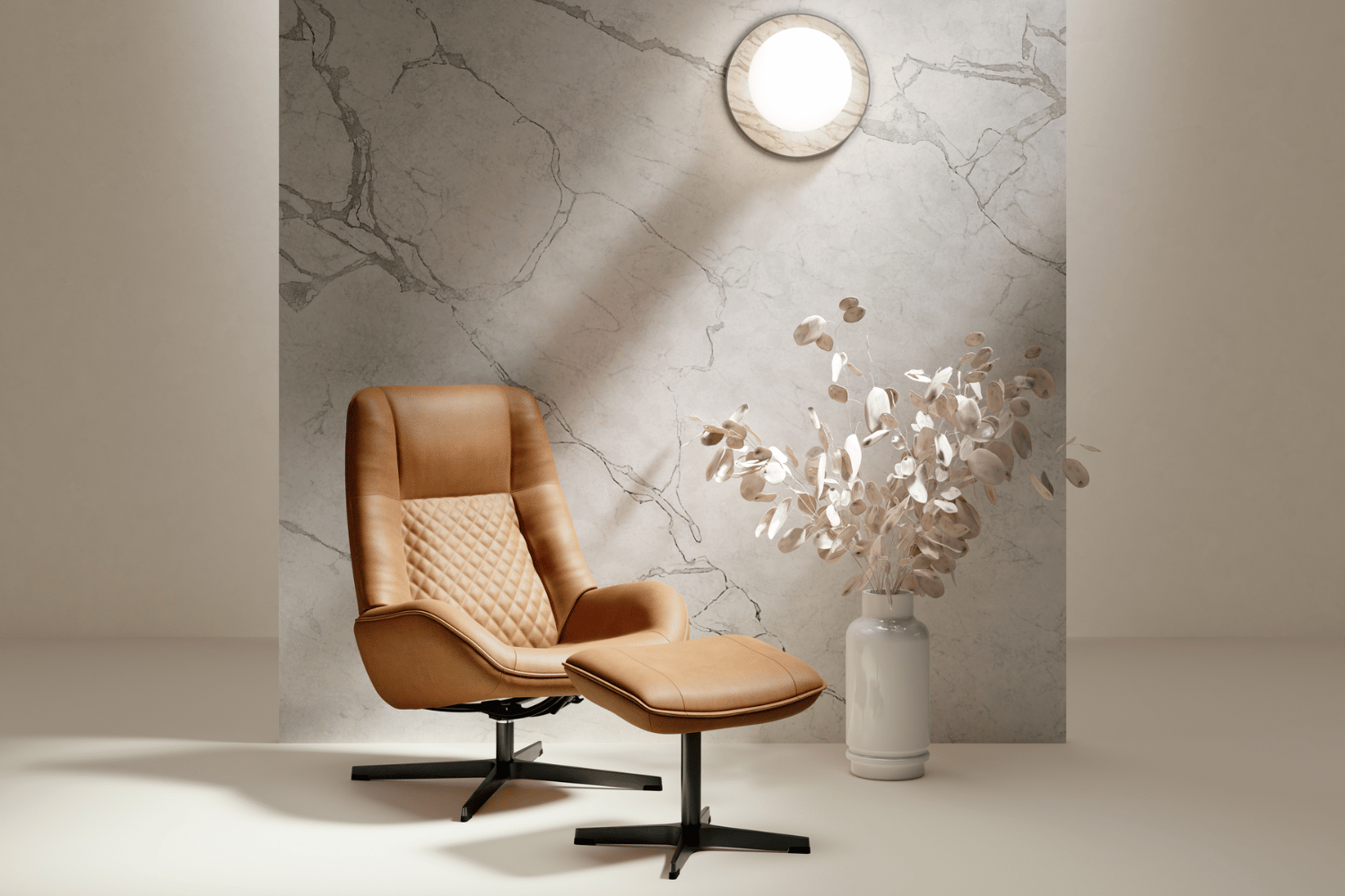 If you are looking for a unique and super comfortable recliner, the Hamme is a great choice. Its seamlessly contoured seat, swivel base, and quilted back add character to this model. Thanks to our dynamic foam, this amazing chair is neither too soft nor too firm, providing the ultimate comfort for sitting. Add a matching footstool for optimum relaxation. The simplicity of the Hammel recliner design means it looks great in both leather and fabric. This chair embodies quality and durability that go hand in hand with modern design and comes with a 10-year warranty on our dynamic foam, the springs, and the inner frame. The Hammel catches the eye, and its extraordinary comfort will make you never want any other recliner. Stretching your back has never felt so good, day after day.