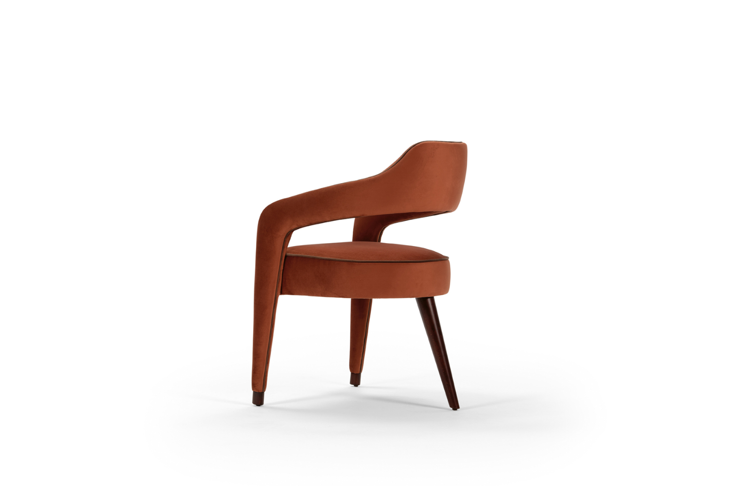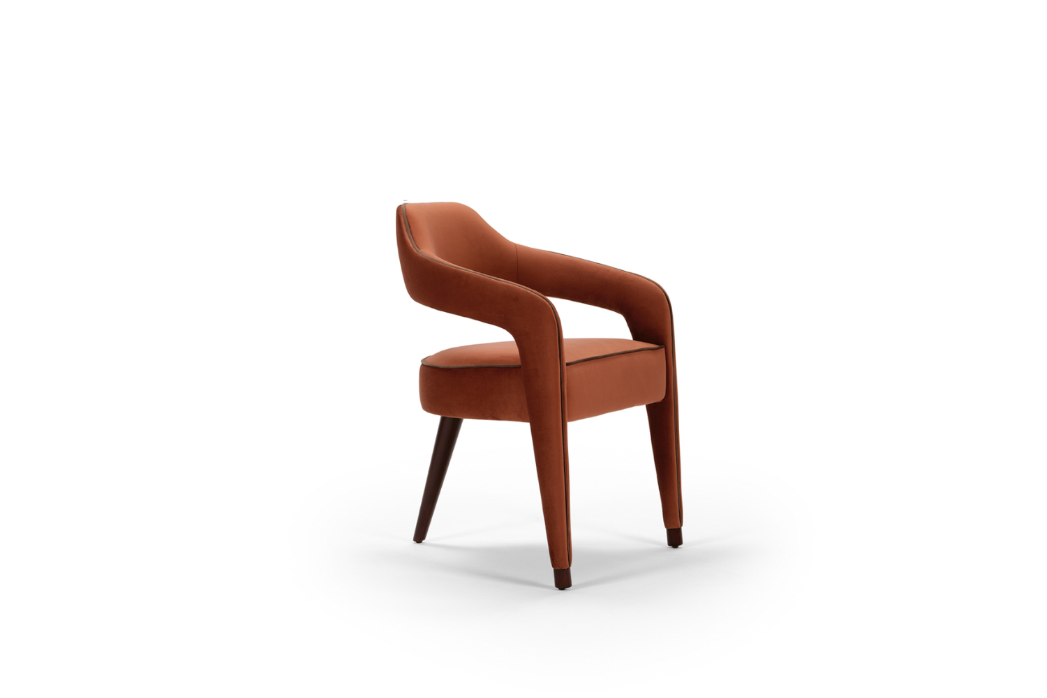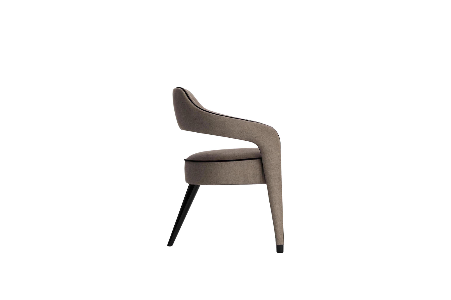 The Iviana Dining Chair is a statement of sophistication, featuring a distinctive design with a single back leg that brings an elegant edge to your dining space. Upholstered in your choice of fabric, leatherette, natural leather, or COM, this chair offers a versatile look enhanced by optional contrasting piping that traces the seat and back, extending seamlessly to the front legs. The Iviana Dining Chair is crafted to elevate any dining room with its unique, refined presence.