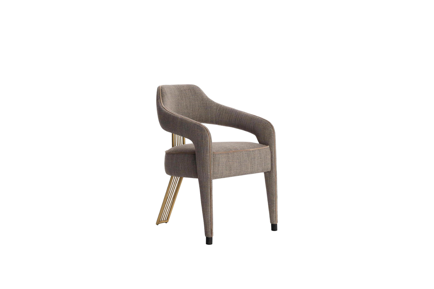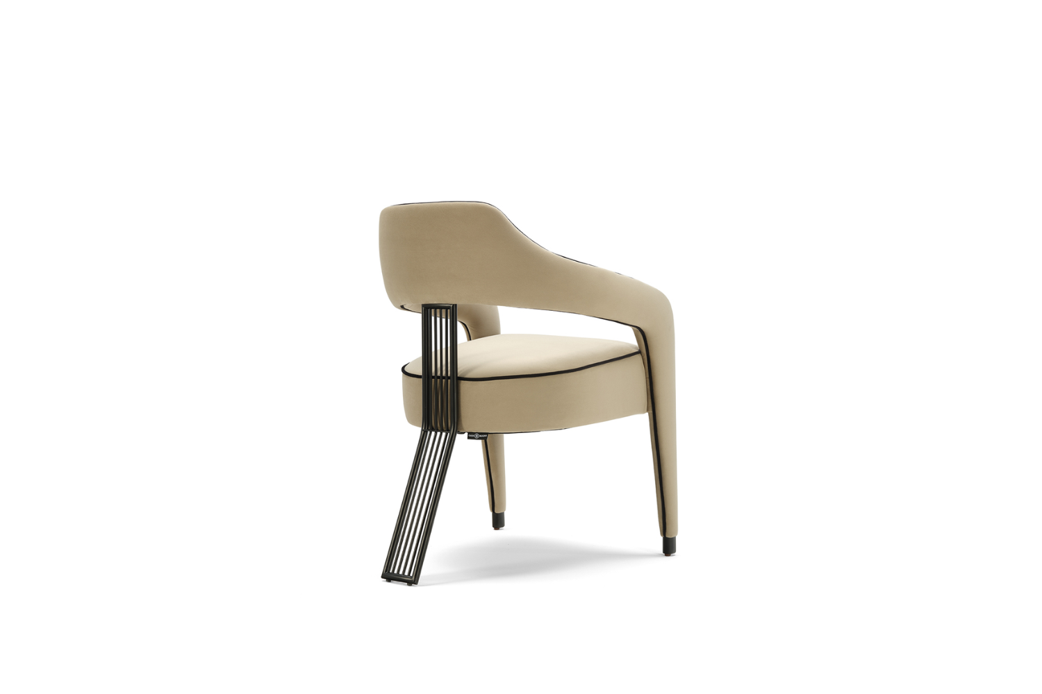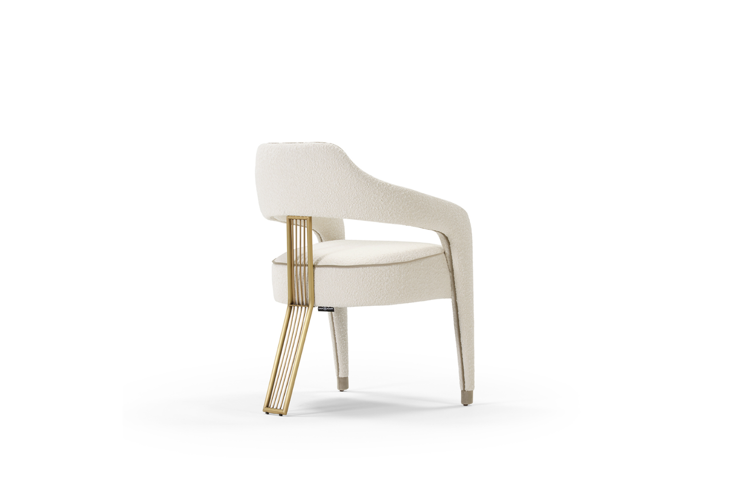 The Iviana II Dining Chair from Eurohome embodies exclusive elegance, featuring a unique single back leg design that adds a touch of refined sophistication to any dining space. Crafted with exquisite piping details that gracefully outline the seat and extend down the front legs, this chair is as luxurious as it is stylish. Choose from Antique Brass, Stainless Steel, or Painted Iron for the back leg to perfectly complement your space. Available in your choice of high-quality Fabric, Leatherette, Natural Leathers, or Customer's Own Material (COM), the Iviana II invites you to experience luxury seating tailored to your unique style.
