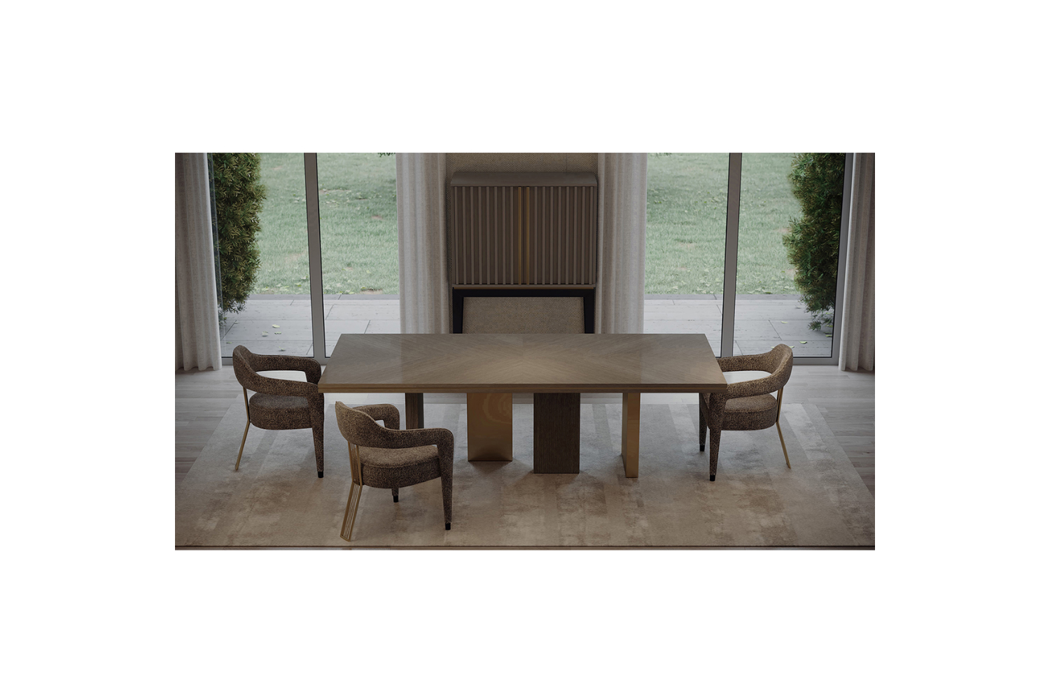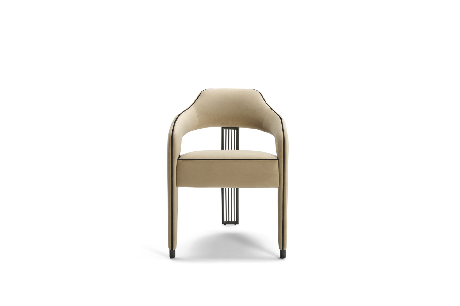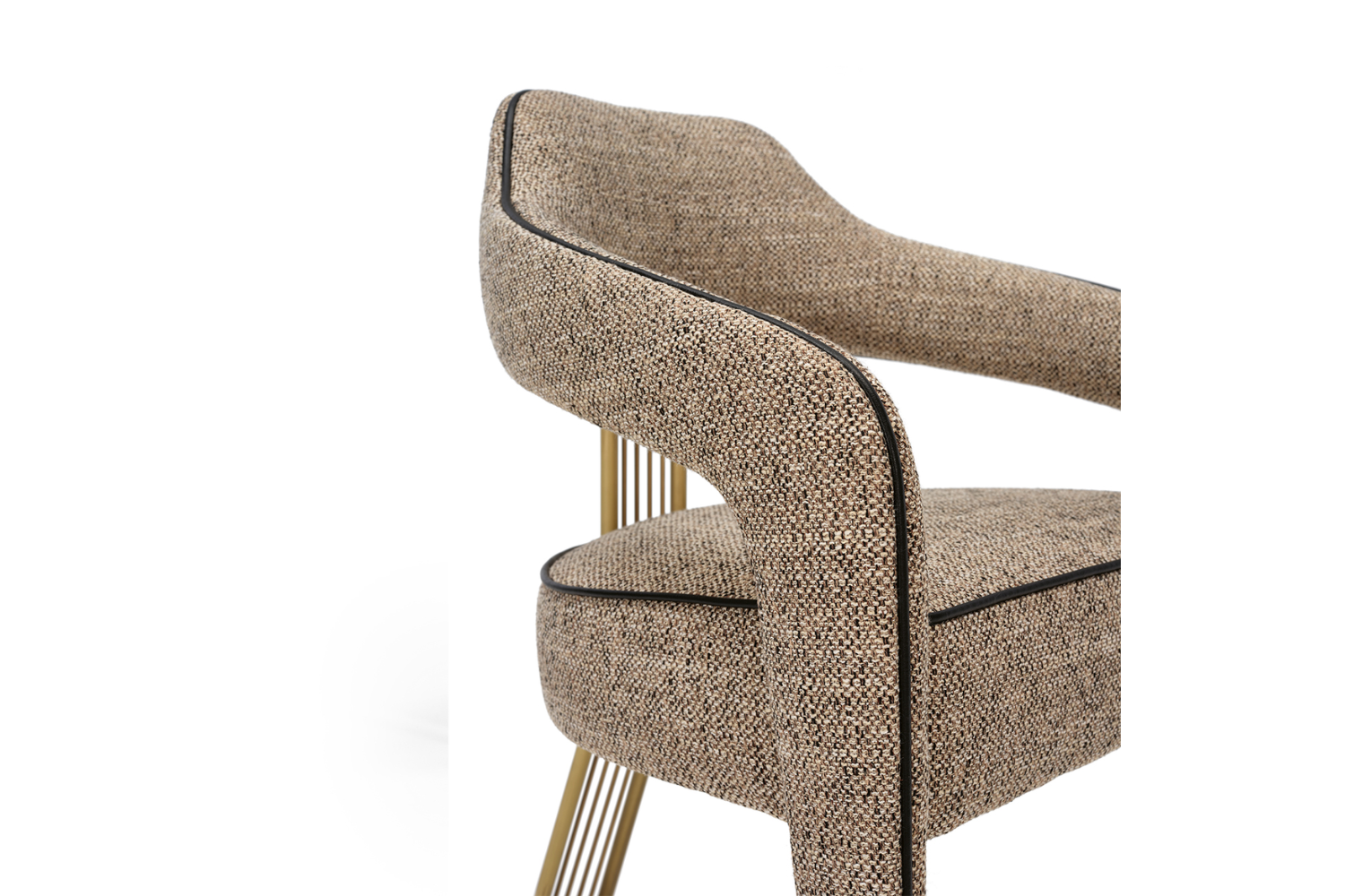 The Iviana II Dining Chair from Eurohome embodies exclusive elegance, featuring a unique single back leg design that adds a touch of refined sophistication to any dining space. Crafted with exquisite piping details that gracefully outline the seat and extend down the front legs, this chair is as luxurious as it is stylish. Choose from Antique Brass, Stainless Steel, or Painted Iron for the back leg to perfectly complement your space. Available in your choice of high-quality Fabric, Leatherette, Natural Leathers, or Customer's Own Material (COM), the Iviana II invites you to experience luxury seating tailored to your unique style.
