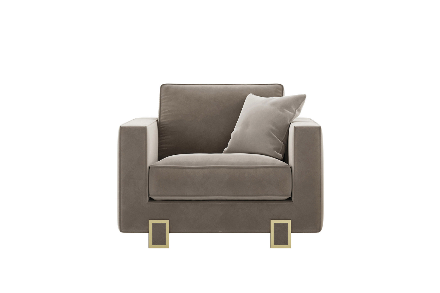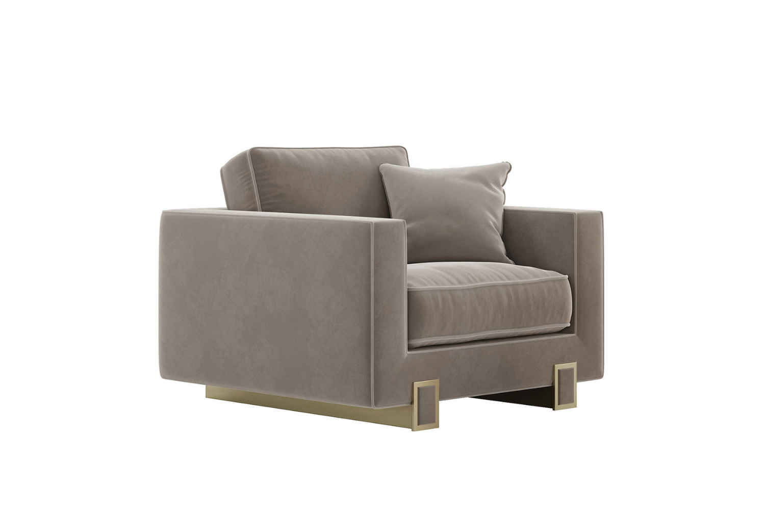The Laisa Armchair exudes delicate elegance, making it a versatile addition to any room. With thoughtful details like contrasting piping and antique brass lacquered feet, this armchair combines sophistication with inviting comfort. Available in a variety of fabric colors, leatherettes, natural leathers, or COM, the Laisa Armchair offers customizable luxury for any interior. Decorative cushion sold separately.