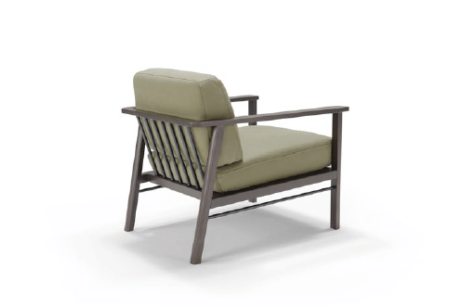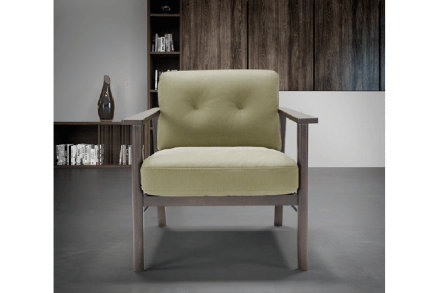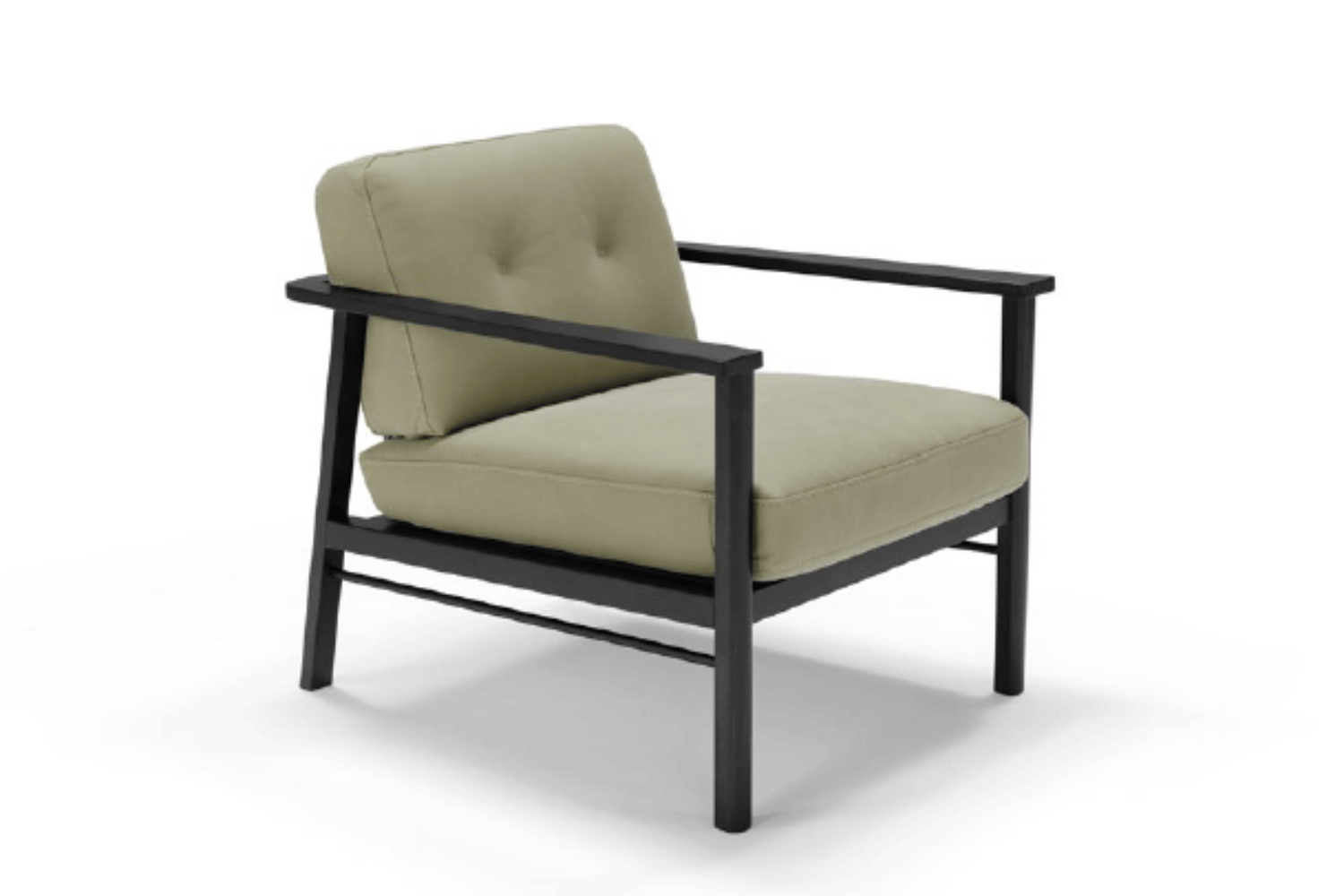 With its timeless lines, Laurey armchair is supported by a wooden and metal structure that frames the cushions with an elegant capitonné motif on the backrest and gentle seams on the seating cushion.