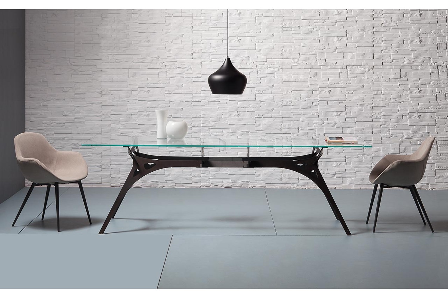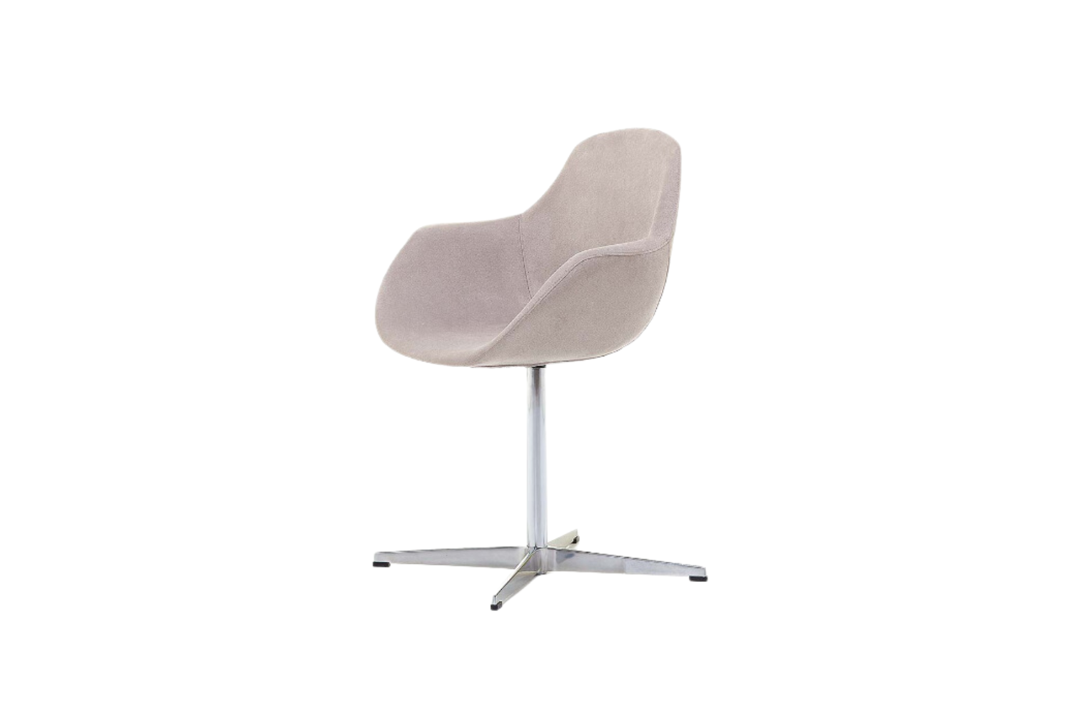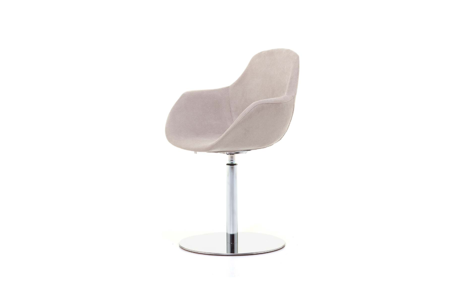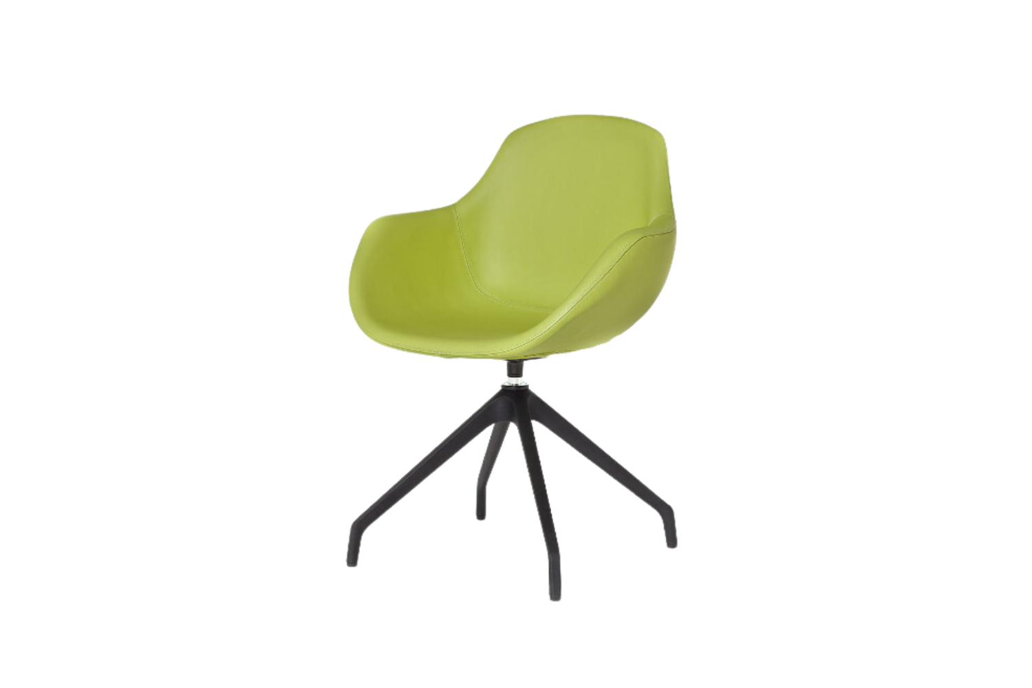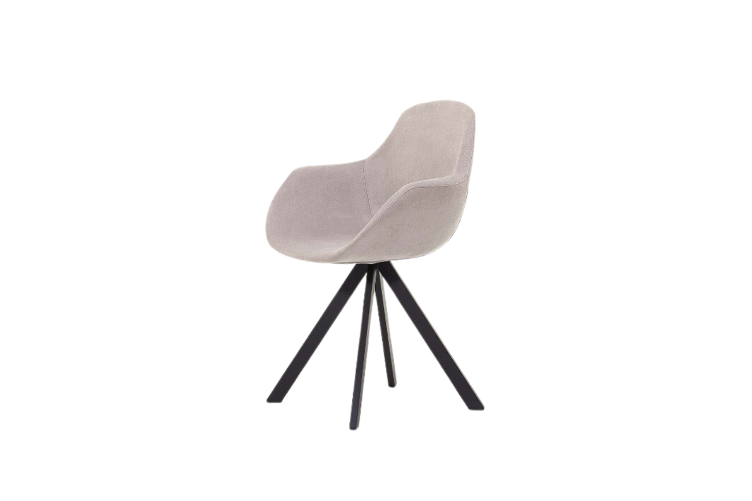 Armchair with hard injected polypropylene shell, upholstered with polyurethane foam, and covered in fabric, leatherette or leather. Available in several finishes and base options.