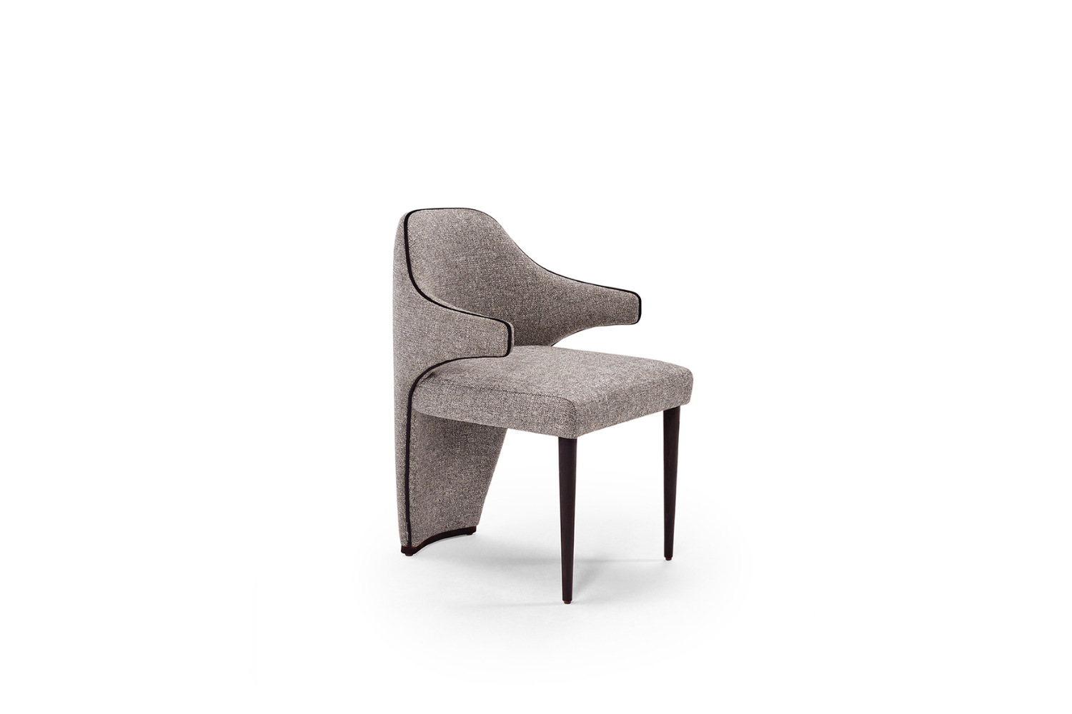 The Merin Dining Chair boasts an inviting design crafted to envelop you in luxurious comfort. Its bold aesthetic is perfectly balanced by immersive, relaxing seating. Built on a solid wood frame, Merin features two front legs that can be finished in lacquer or veneered wood colors. The elegantly tapered back extends gracefully to the floor, elevating this chair to an exceptional level of sophistication.