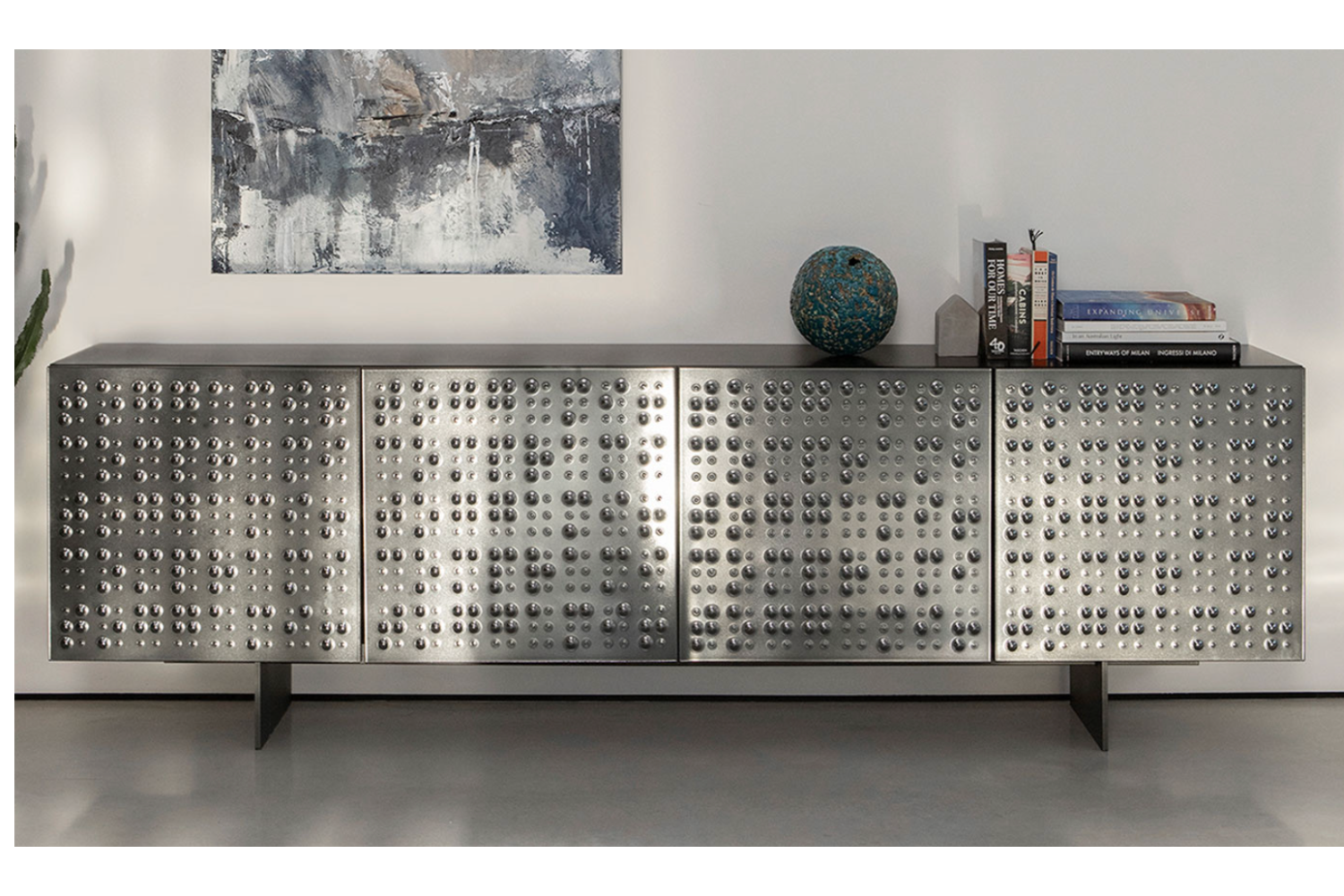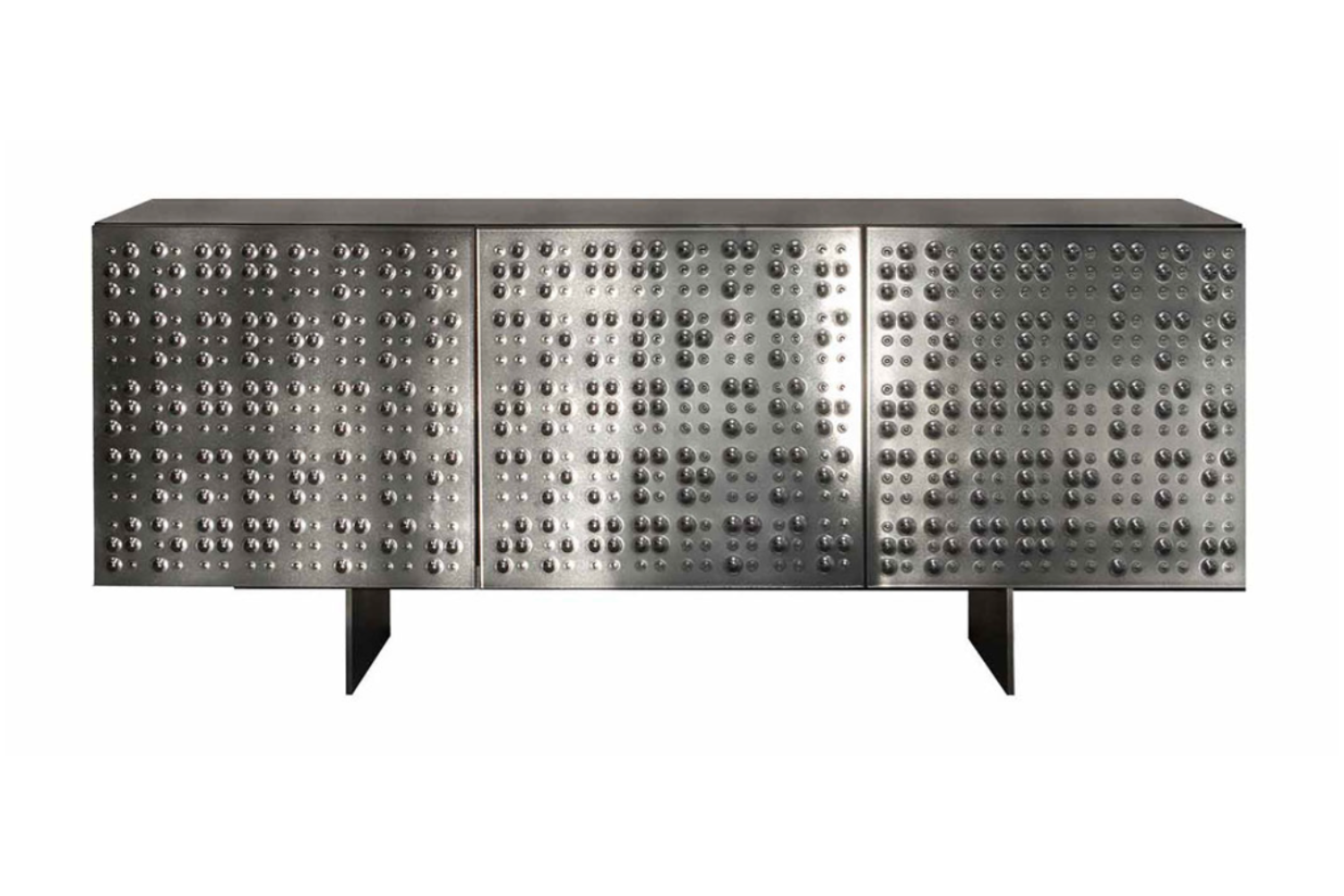 Make a bold statement with the Millabel Sideboard, where daring design meets everyday functionality. Its facade features a mesmerizing bubble-like texture, creating an eye-catching interplay of light and shadow against its mirrored finish. With ample interior space, glass shelves, and surface area, this piece is perfect for organizing and elevating your modern home. Available in three- or four-door versions, the Millabel Sideboard offers customizable options to suit your style: Door finishes: Smoked or bronze mirror Feet finishes: Carbone grey or stone bronze metal Effortlessly combine style and practicality with the Millabel Sideboard.