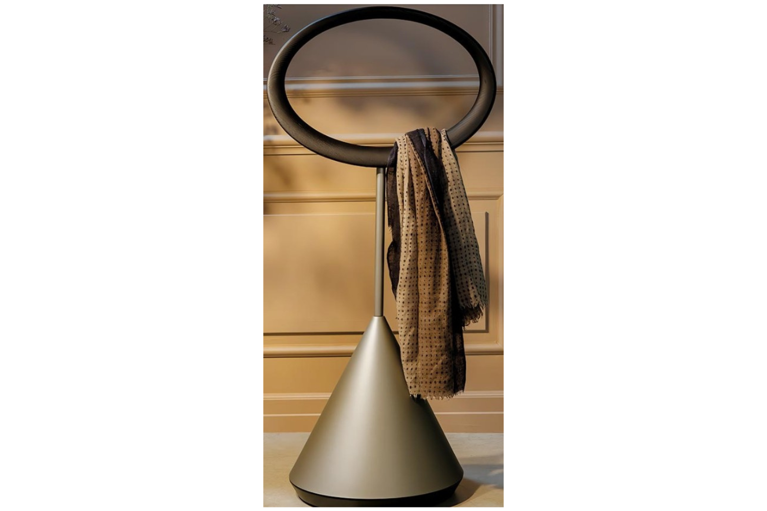 The Mirra coat rack reimagines organization with an artistic flair inspired by the surrealist ideals of Joan Miró. Its bold design features a wide oval ring, a slender midsection, and a striking cone-shaped base, creating a functional yet sculptural centerpiece for your space. Beyond its artistic appeal, the Mirra coat rack offers practical utility, allowing you to easily loop outerwear through the ring. Ideal for foyers or mudrooms, this innovative piece keeps your essentials organized and within reach as you step out the door.