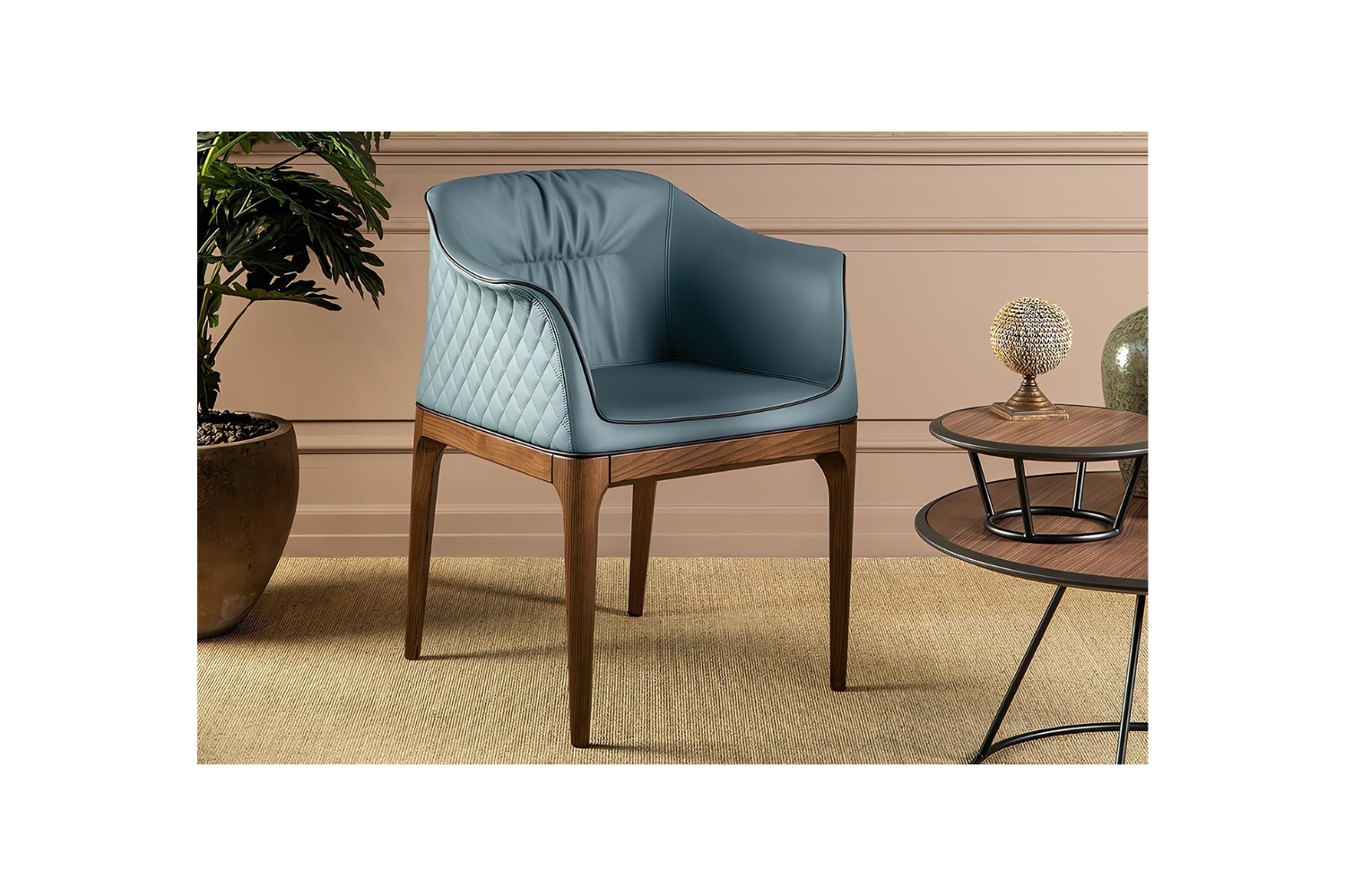 Indulge in luxury with the Mivina Elite dining chair, designed to elevate the modern dining experience. Crafted with remarkable attention to detail, this chair offers a blend of refined elegance and unparalleled comfort. The delicate piping along the perimeter, linear tufting on the backrest, and diamond quilting along the back provide captivating texture and sophistication, making every dining occasion a statement of style. Whether you opt for the standard chair or the armchair version with enveloping sides, the Mivina Elite ensures a lavish seating experience. The deep, cushioned seat offers exceptional comfort, perfect for enjoying long meals with loved ones. Highly customizable, the Mivina Elite dining chair comes in a range of vibrant upholstery options, including fabric, leather, and eco-leather, allowing you to tailor the look to your unique taste. The rustic wooden legs, available in walnut-stained ashwood, dark oak-stained ashwood, or black ash, create a beautiful contrast to the luxurious upholstery, completing this exquisite dining chair.