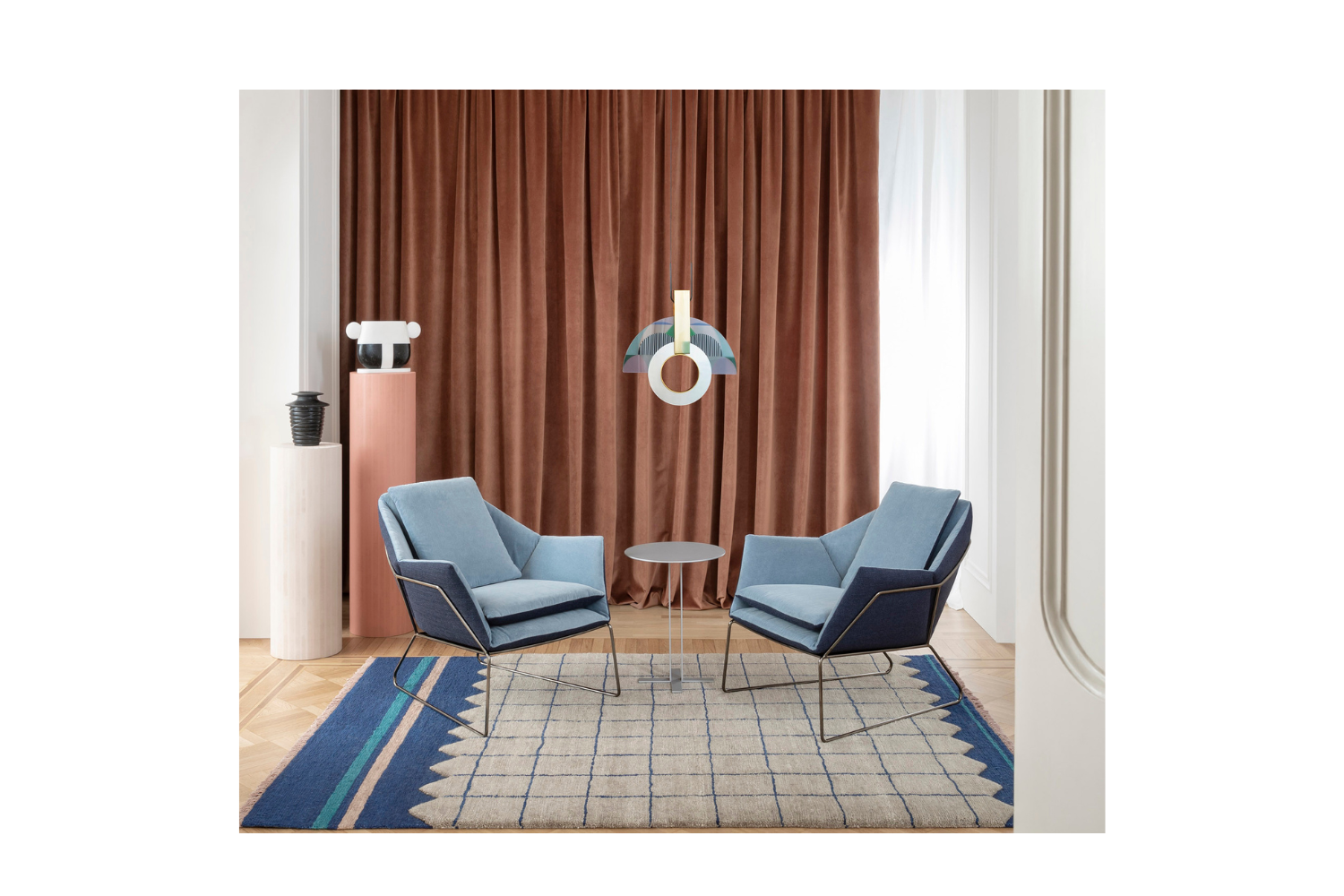 New York is a collection which proudly bears the name of the Big Apple. Two souls, uptown and downtown, enclosed in a single design piece whose fully changeable covers reveal its innate versatility. The New York Armchair, with its essential metal frame and endless possibilities of the double textile cushion, allows for a high degree of personalization. The frame in iron rod comes in many colours and coating finishes. Fully removable covers.
