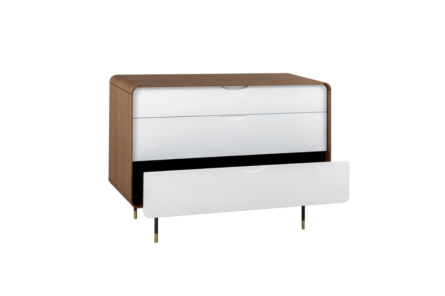 Transform your bedroom into a serene sanctuary with the Opra Night Dresser, a perfect blend of elegance and modern design. This dresser features a timeless frame, with clean lines and soft curves that exude classic beauty. Combining wood and metal elements, it brings together a multi-material construction that enhances both style and functionality. With three spacious drawers, it offers ample storage for your wardrobe essentials, while the roomy top surface provides the ideal space for decor and personal items. Designed for a contemporary aesthetic, this piece promises sophistication and practicality.