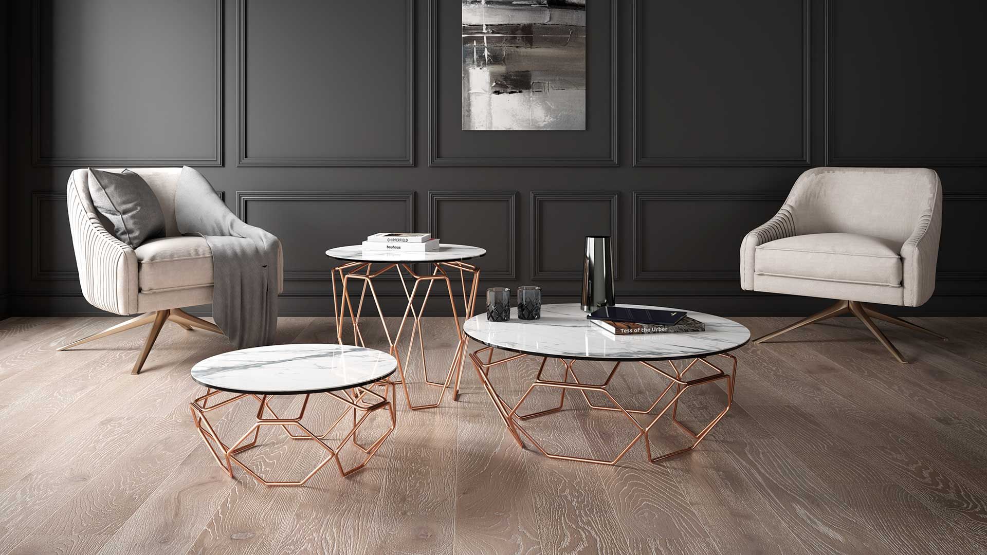 Elevate your living space with the exquisite charm of our extendable cocktail table featuring synchronized revolving glass tops. The sleek design is enhanced by a sophisticated metal base and supports crafted in either painted or galvanized steel. Revel in the seamless fusion of style and functionality, making this table a captivating centerpiece for your contemporary décor