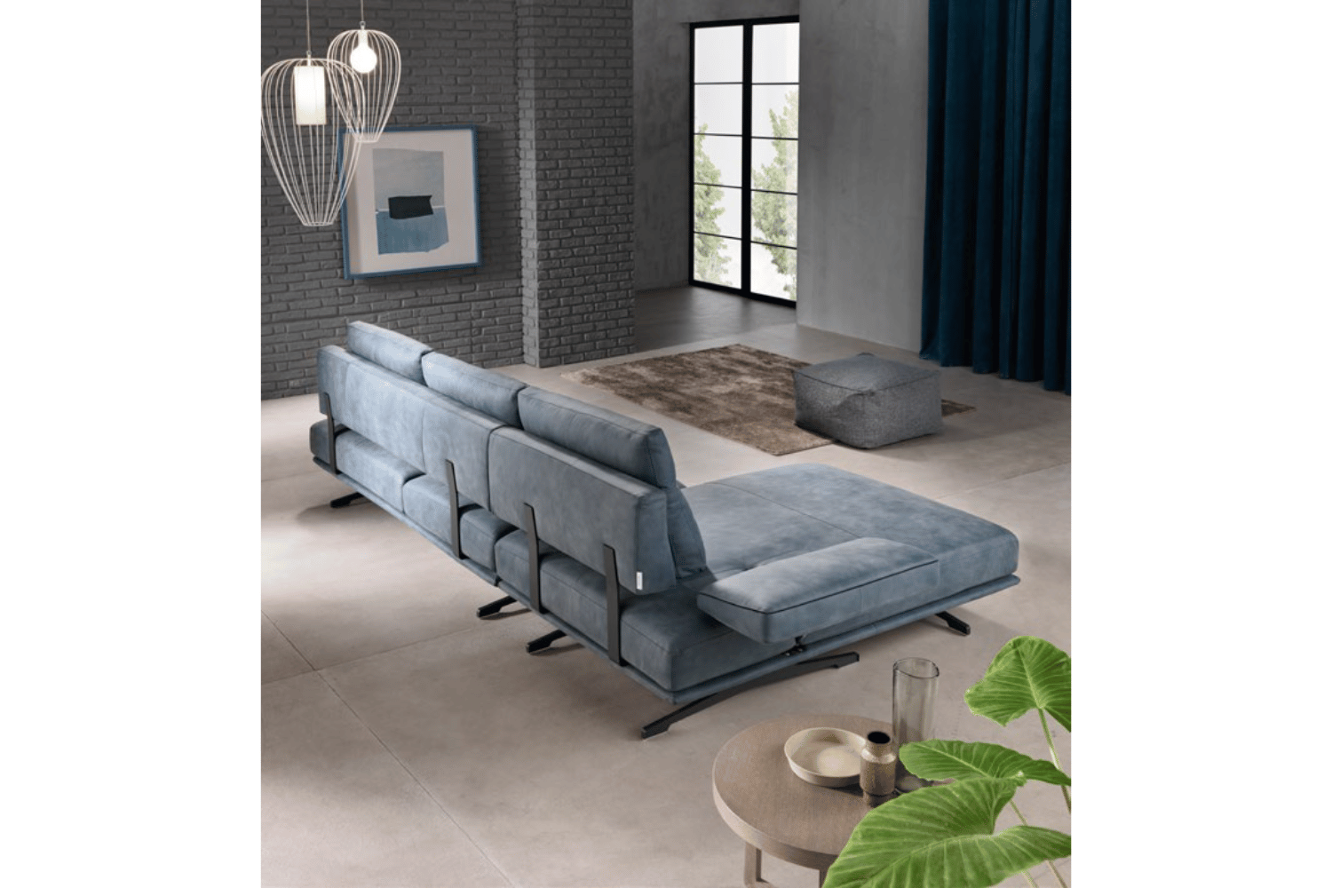 Straight lines, with feather padding on the entire backrest, Santroni shows extra comfort thanks to memory foam seat cushions and the folding armrest with manual mechanism. The back is supported by metal bands, in the same finish as for the feet, which add to this model strength and personality. This sofa set is available in fabric or leather, with modules that allow a wide range of solutions, including corner set with chaise or with terminal peninsula.