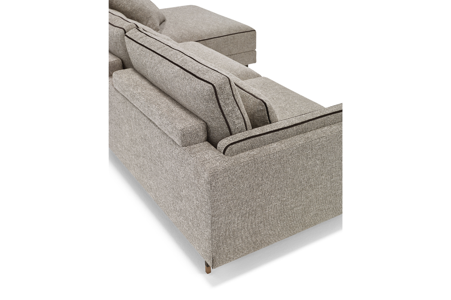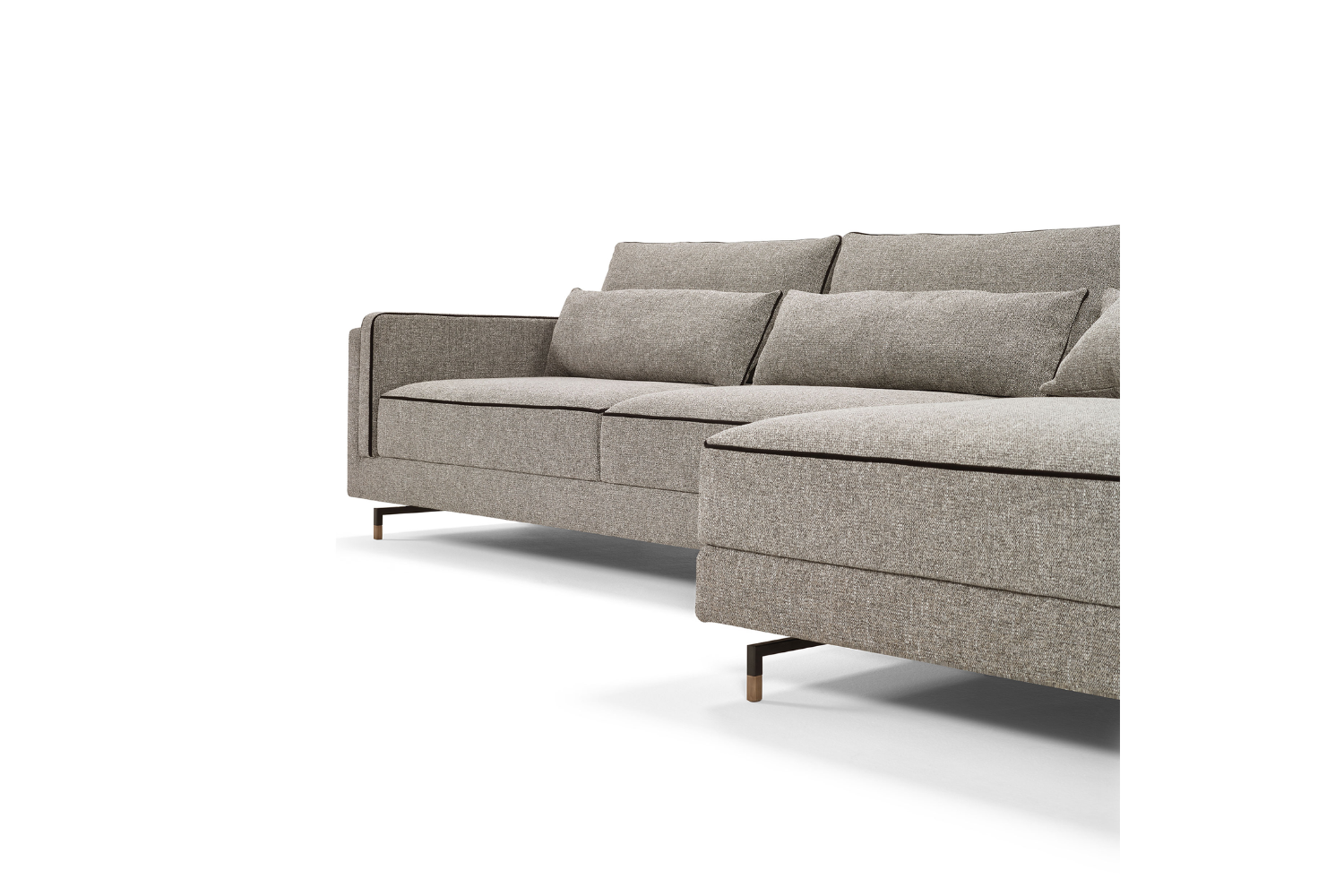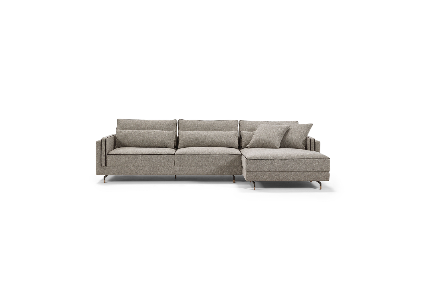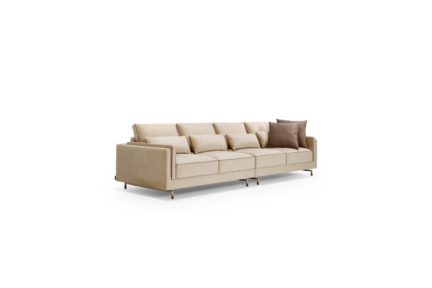 Serena Sofa - Metal Feet The Serena Sofa is a refined modular seating system that seamlessly combines elegance, comfort, and versatility. Its contemporary design features sleek contrast piping along the profile, lending a touch of sophistication to every angle. Supported by metallic feet, the Serena achieves a modern aesthetic while maintaining perfect balance. Customize your ideal arrangement with options including single armrest elements, center pieces, chaise longues, and open-end sections—designed to adapt effortlessly to your unique style and needs. The Serena Sofa offers endless possibilities to create a space as dynamic as your vision.