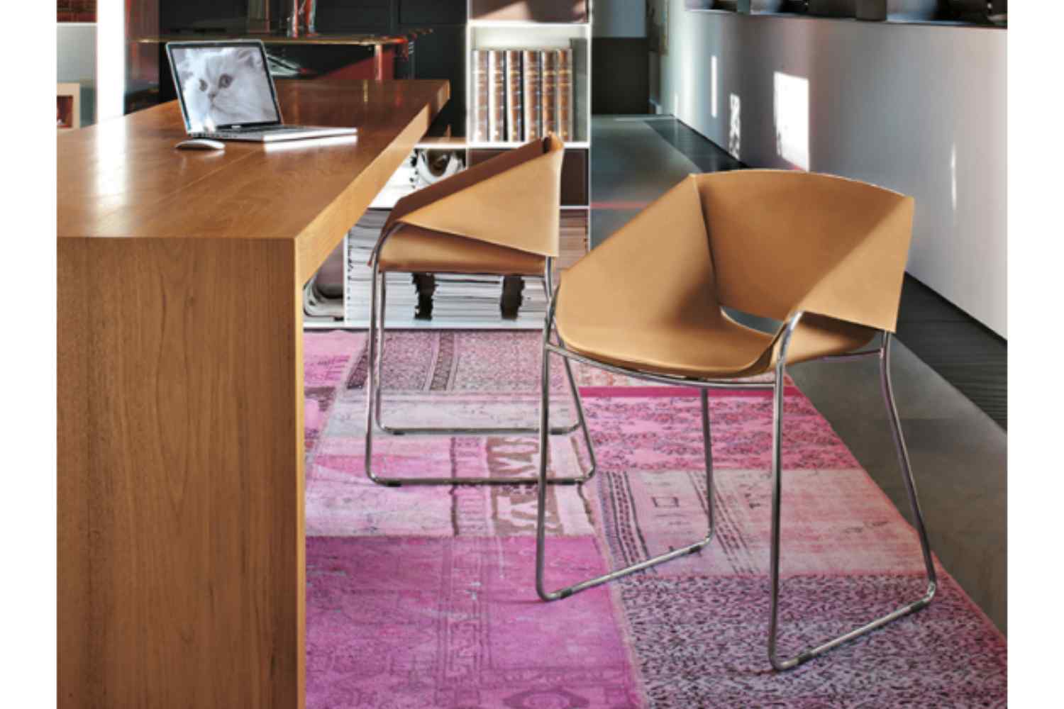 The Simply dining chair stands out as an eye-catching option among mainstream choices. Its unique, geometrically inspired profile adds an edgy style to the modern dining room, and it is as comfortable as it is stylish. Featuring lightweight sleigh legs, the chair is supportive and easily relocated for a convenient feature. The folded accents further contribute to its bold style
