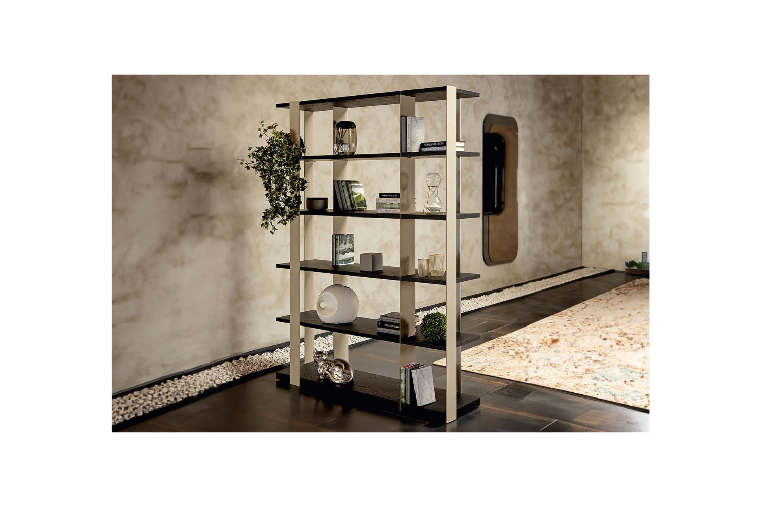 Showcase your book collection in sleek, modern style with the Sintesia Bookshelf. Its clean, linear design emphasizes geometric elegance, creating a striking visual profile. The open shelving provides ample space to display your reading materials, awards, and personal memorabilia. This versatile piece can also function as a room divider, offering both functionality and sophisticated design to fill any space seamlessly.