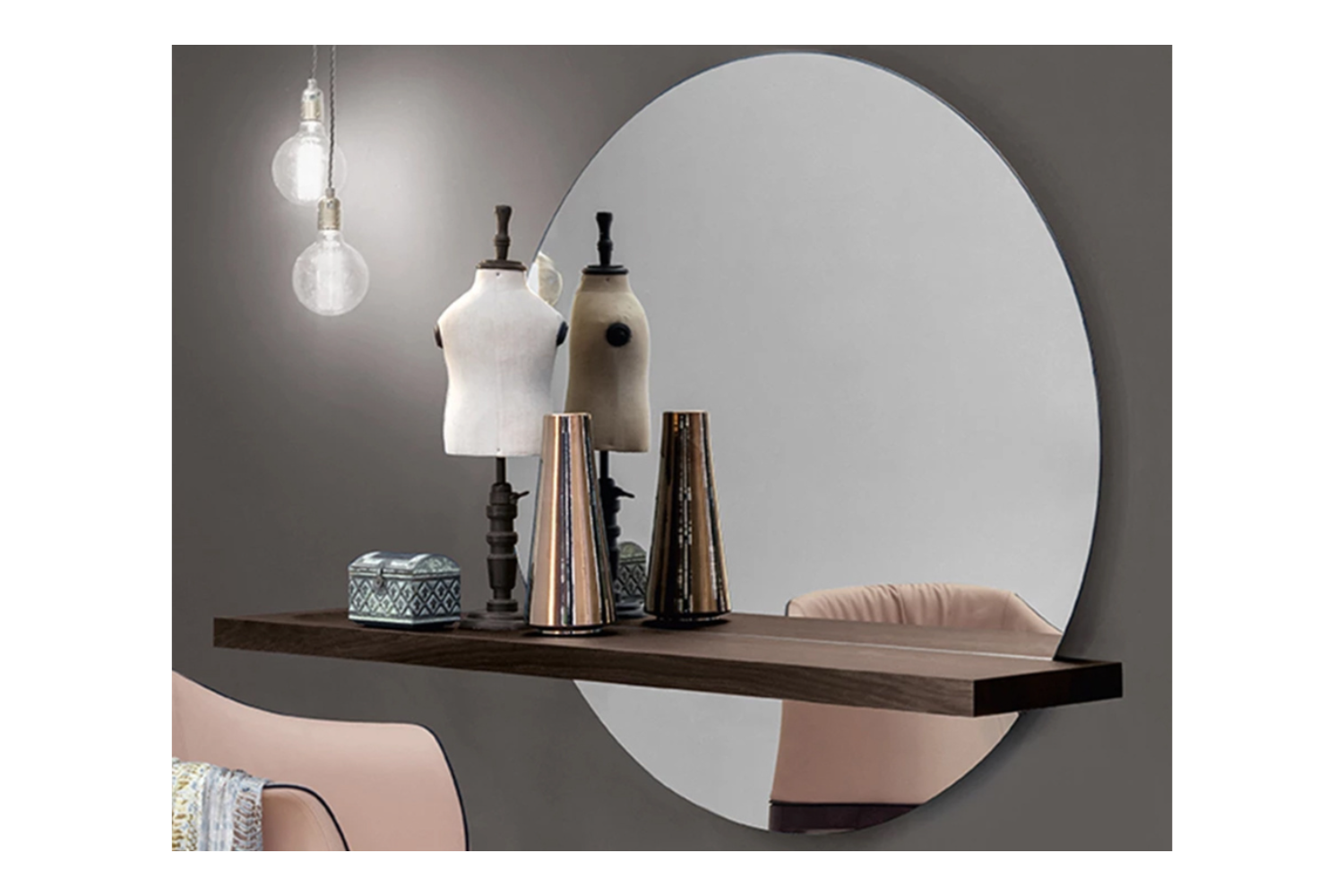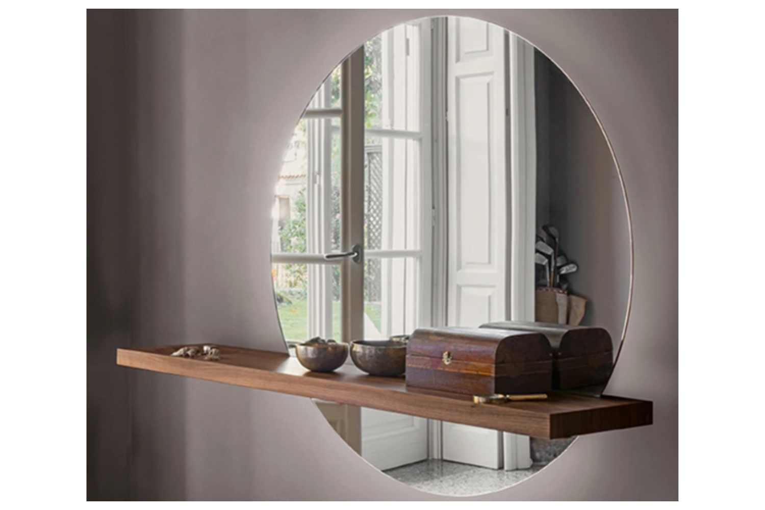The Sunselle Console with Mirror is a bold and elegant statement piece, perfect for enhancing foyers, modern bedrooms, or living spaces. This contemporary console features an asymmetric wooden shelf seamlessly integrated into an oversized round mirror, creating a striking visual effect. Choose from four refined wooden finishes for the shelf, complemented by a mirror in either a silver or bronze tint. For an extra touch of sophistication, an optional integrated LED light around the mirror's edge amplifies its allure, making this piece a true centerpiece in any modern home.