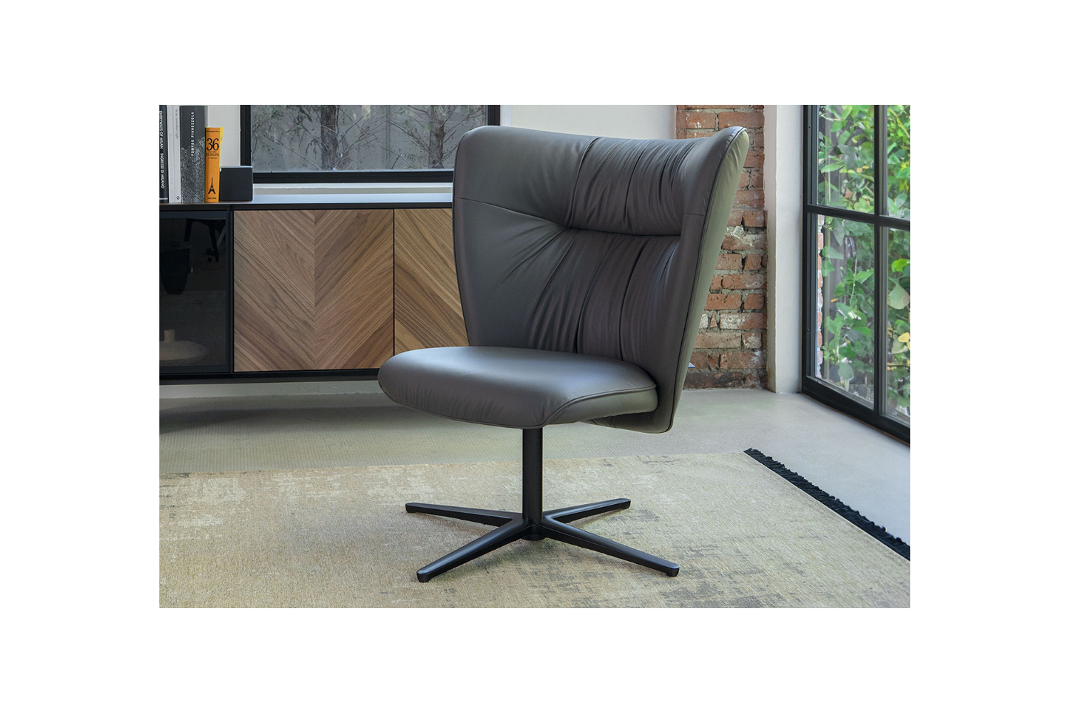 Bold, commanding, and designed to make a statement, the Tendro Lounge chair is a standout piece in any space. Its broad back combines contemporary curves with ultimate comfort, providing both style and support as you lean back. Horizontal stitching through the back adds an element of refined, sartorial elegance, elevating the chair’s overall design. Memory foam padding enhances the plushness, ensuring a luxurious seating experience. Resting on a striking X-shaped metal base, this chair perfectly balances visual strength with supreme comfort.