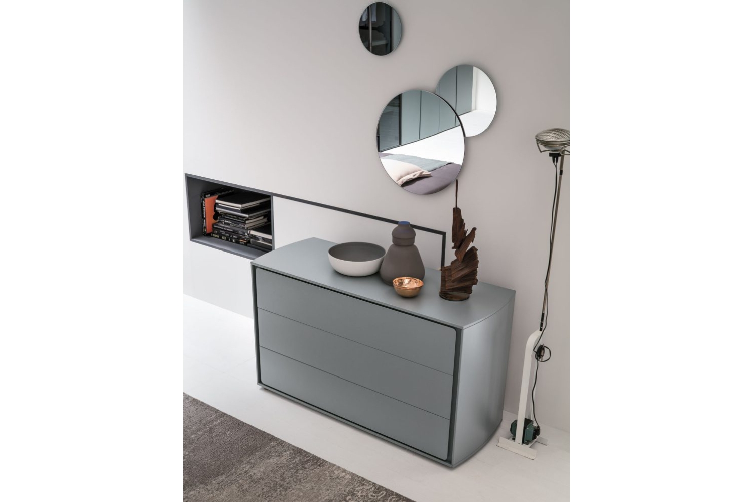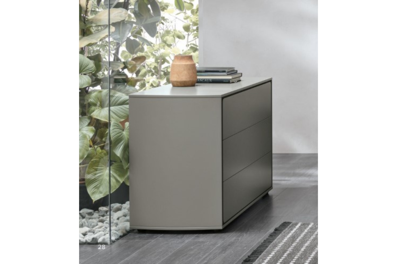 The Tevila Chest brings a refined touch to modern bedrooms with its gracefully curved sides and distinctive recessed detailing around the drawers. This unique yet timeless design ensures versatility, effortlessly blending with various bedroom styles while adding a sophisticated charm. With three or four spacious drawers, the Tevila Chest offers ample storage for clothing and accessories, keeping your space neat and organized. The smooth top surface provides the perfect area for decorative accents, personal items, or a statement piece. Crafted with precision from high-quality materials, this chest is designed for durability and long-lasting appeal. Choose from three oak wood finishes or a wide selection of matte lacquer colors to customize it to your aesthetic.