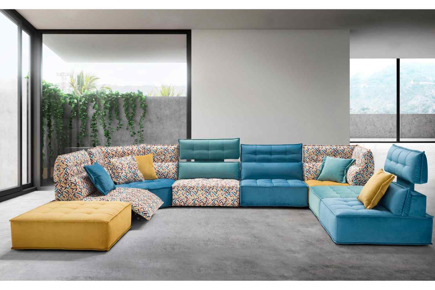 Experience freedom, relaxation, and creativity with this sofa, characterized by its consistent quilting on the headrest and seating cushion. The inclusion of an adjustable electric vertical headrest and reclining seating enhances its relaxation capabilities. Additionally, its modularity and fabric cover offer the flexibility to create various impactful compositions easily adaptable to any setting.