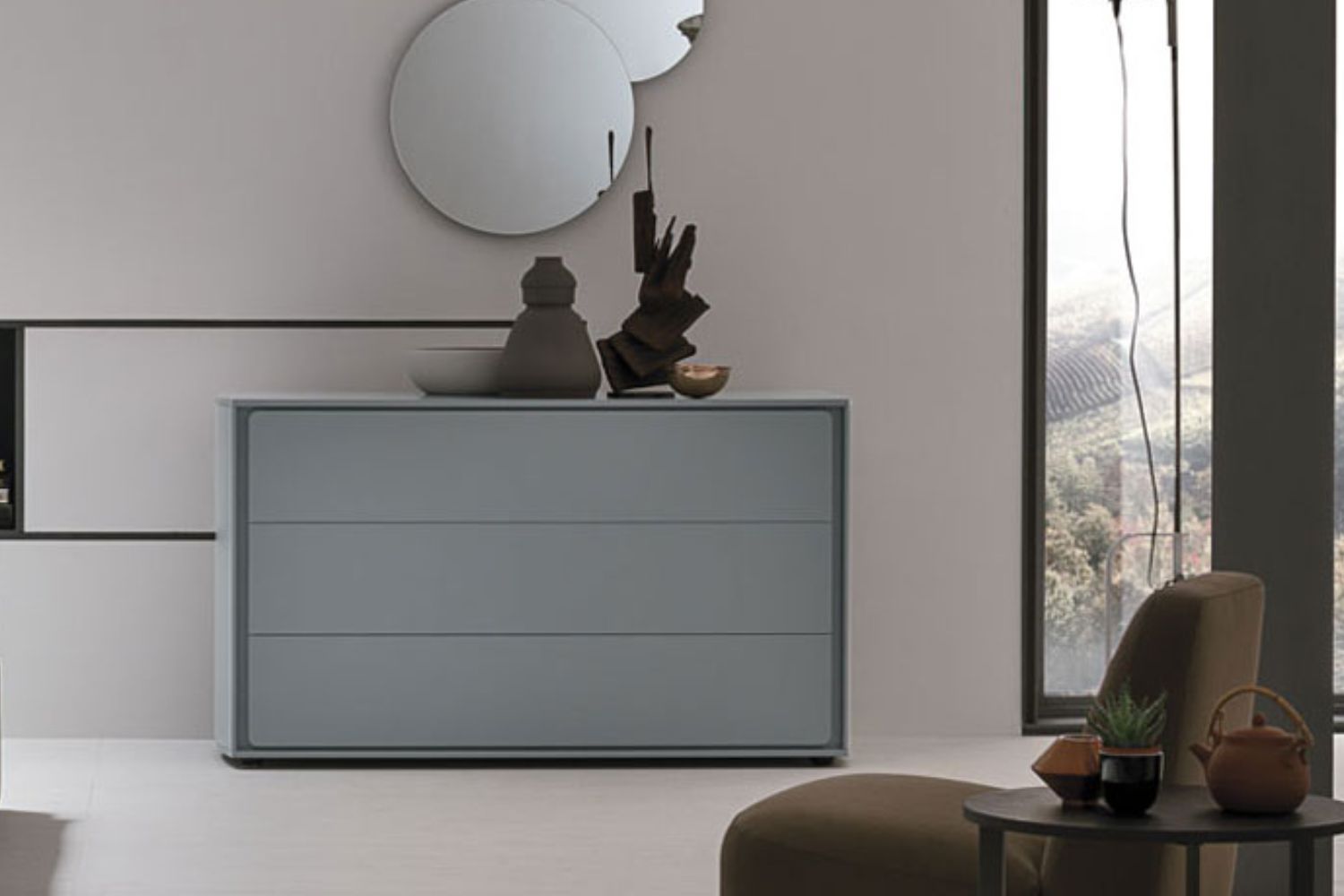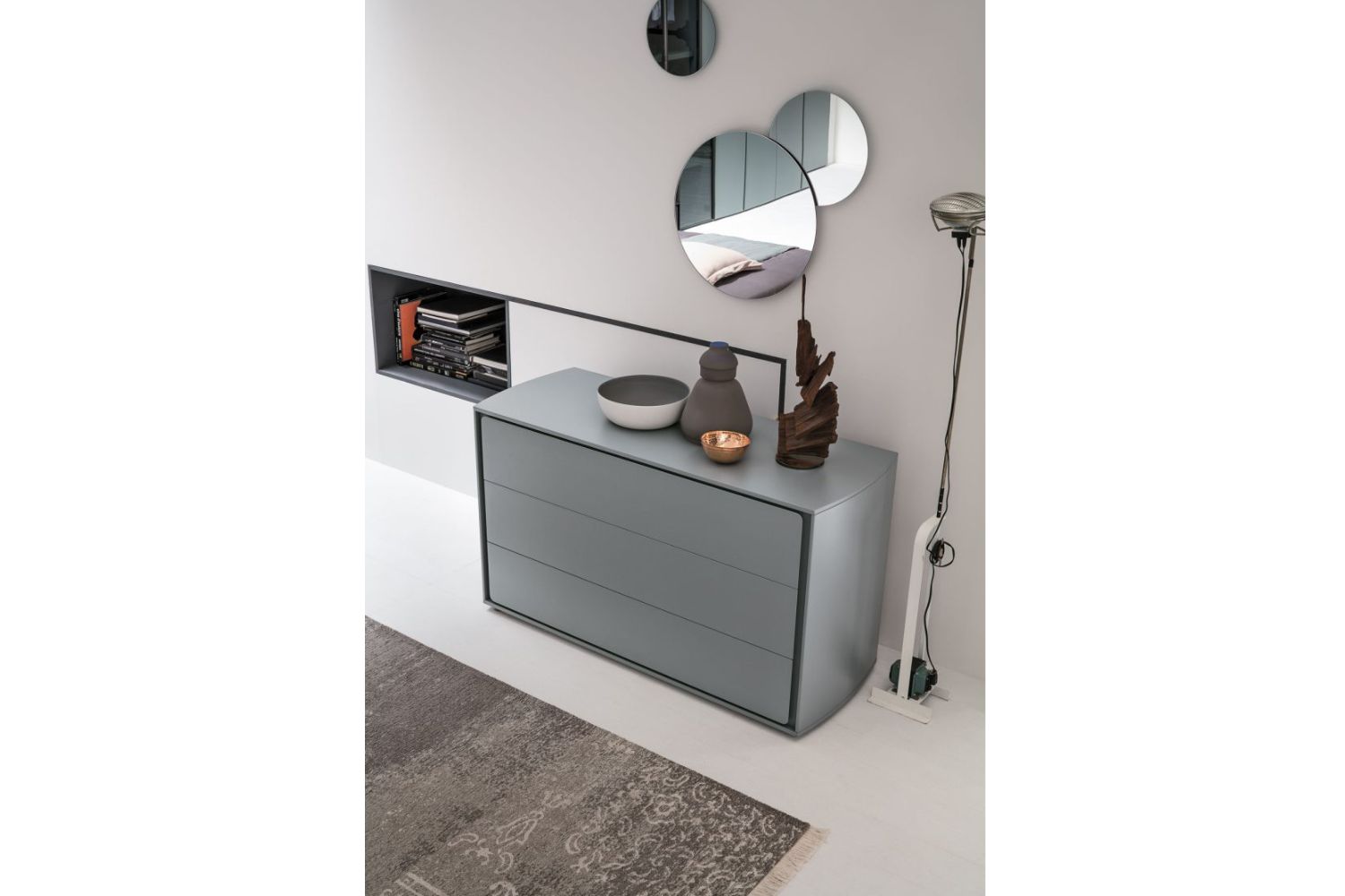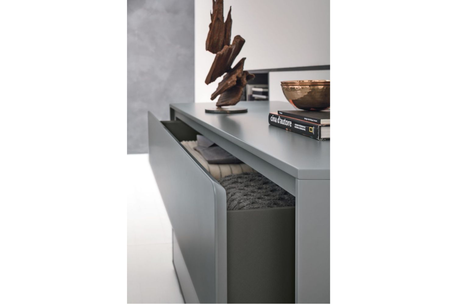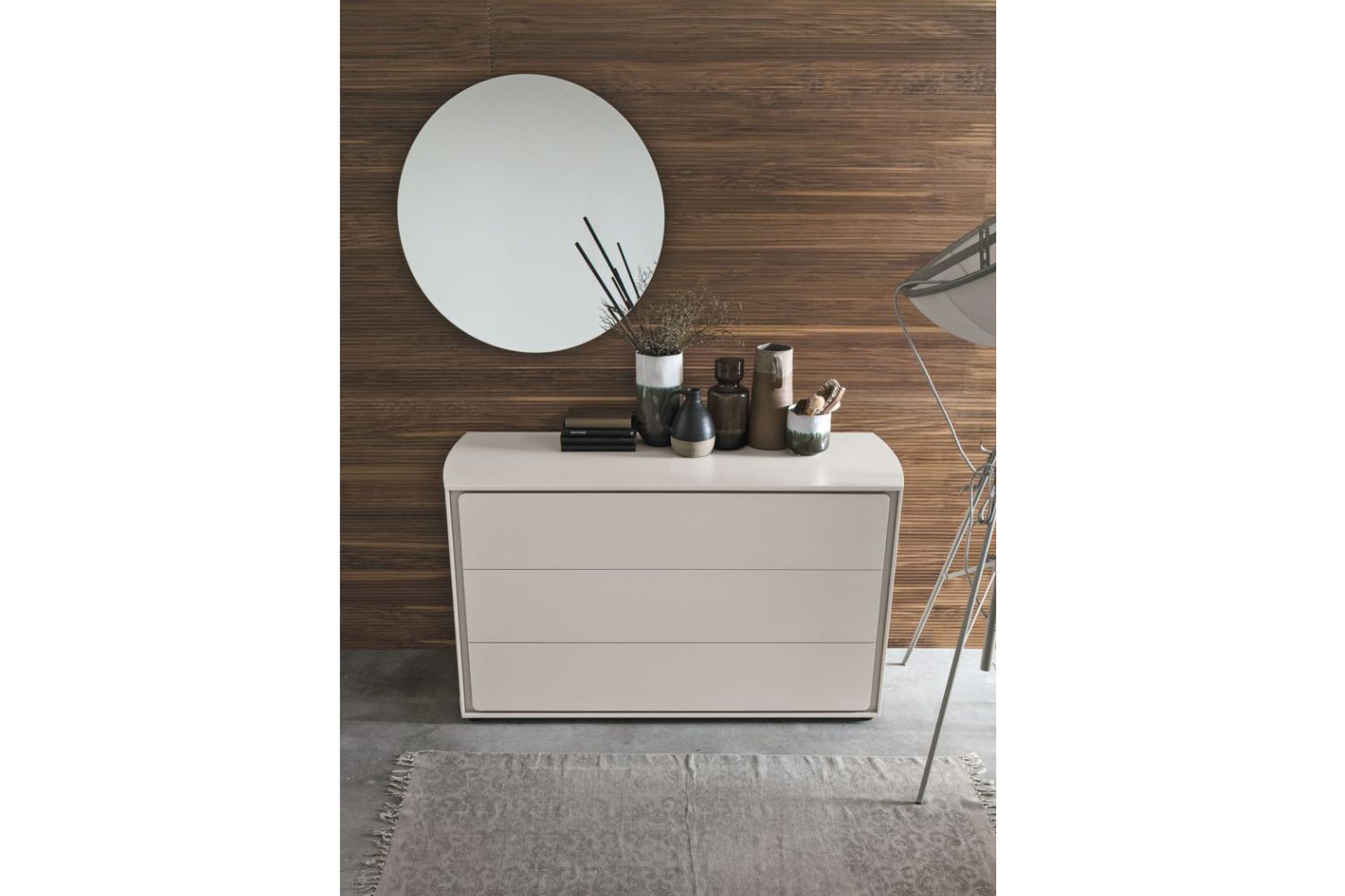 The rounded lines of the Tivoli furniture create classic-style units that become modern in their lacquered version. Two styles merge to create an exclusive new one.