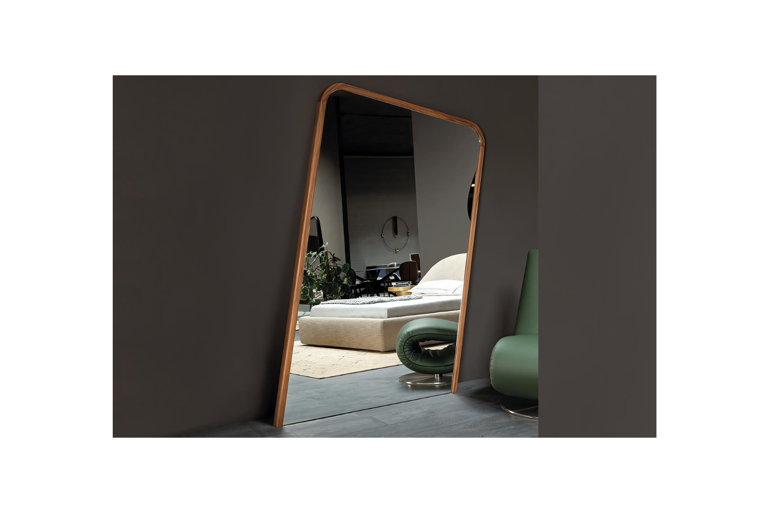 Introducing the Towery Mirror, an extraordinary piece that redefines modern style with a strikingly unique design. Inspired by the tilt of a famous leaning towery, this mirror's angled position creates a mesmerizing visual effect, making it appear as though it is sinking into the floor. The minimalist design forgoes a bottom frame, contributing to its modern allure. Encased in a gracefully curved wooden frame, the mirror is as functional as it is visually stunning, enhancing your space while offering a perfect reflection. A true conversation starter for any contemporary room.