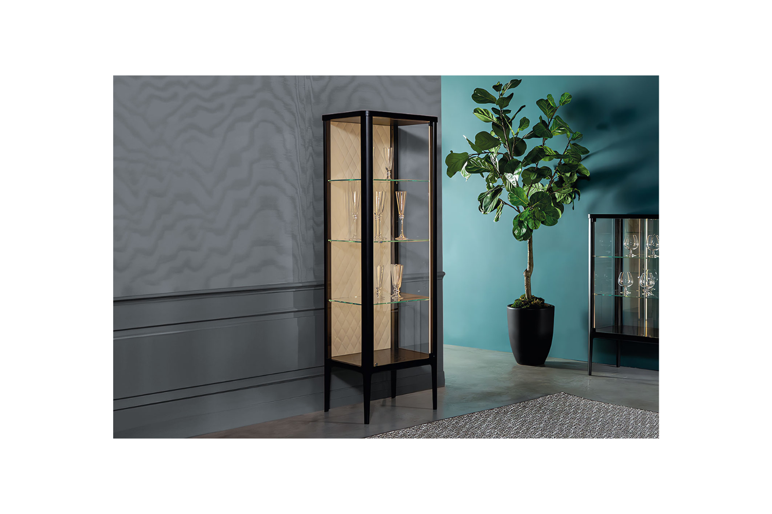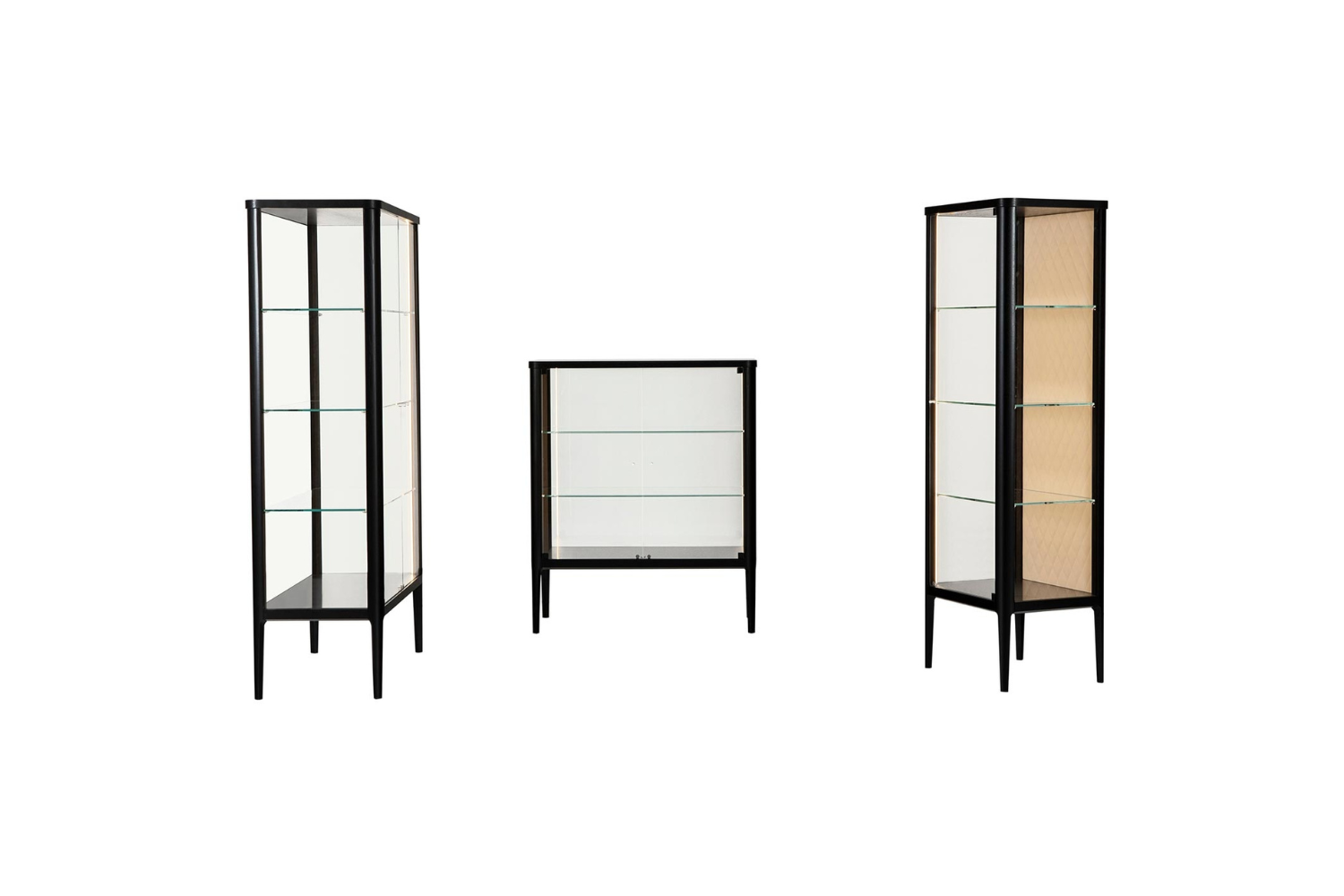 Inspired by the goddess of beauty, the Venuza curio combines elegance and lightness with functionality. This exquisite piece not only enhances your space but also serves as the perfect showcase for your most treasured items. Whether it's your fine china or decorative accents, the Venuza curio’s spacious shelves offer a refined platform to display your collection. The rustic wood frame and glass shelves create a graceful aesthetic, and for added luxury, the back panel can be upholstered in soft, colorful leather with regal diamond stitching. Prefer a more minimalistic look? Opt for glass in place of the upholstery for a sleek, modern finish.